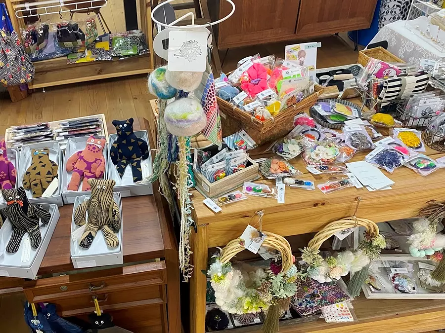 1点もののアクセサリーや雑貨、小物、木工、調味料等、絵画、ペットのおやつ等が販売されています。