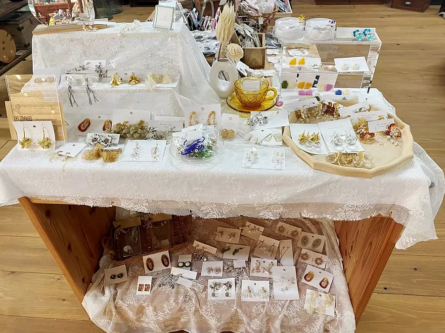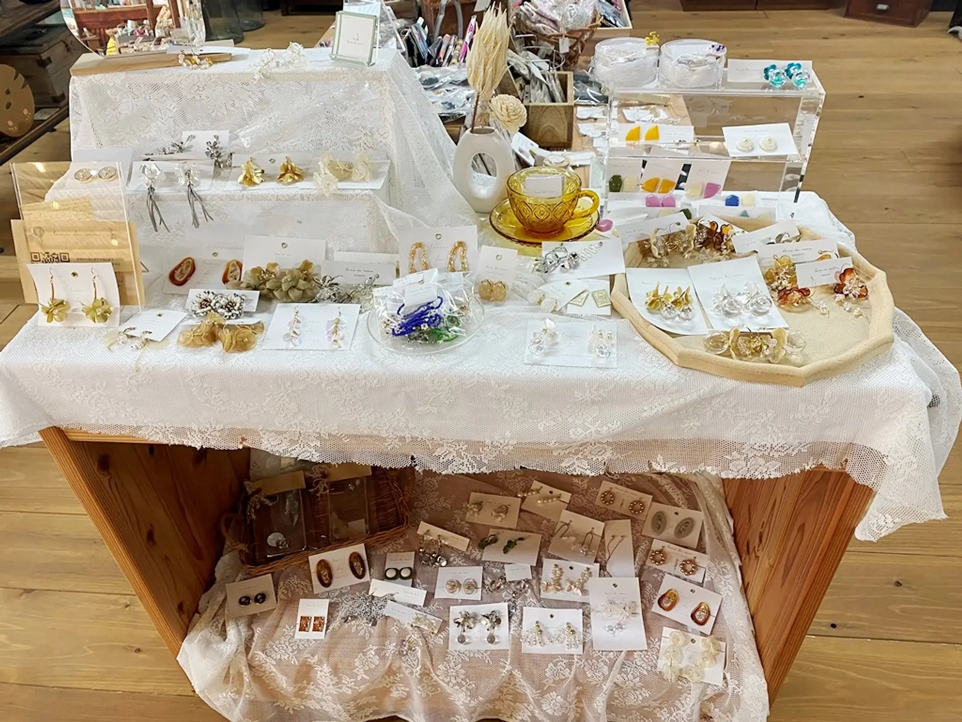 可愛らしいハンドメイドのピアス、イヤリングの他にも、マスクチェーンやヘアアクセサリーなど。ついつい手に取りたくなりますね。