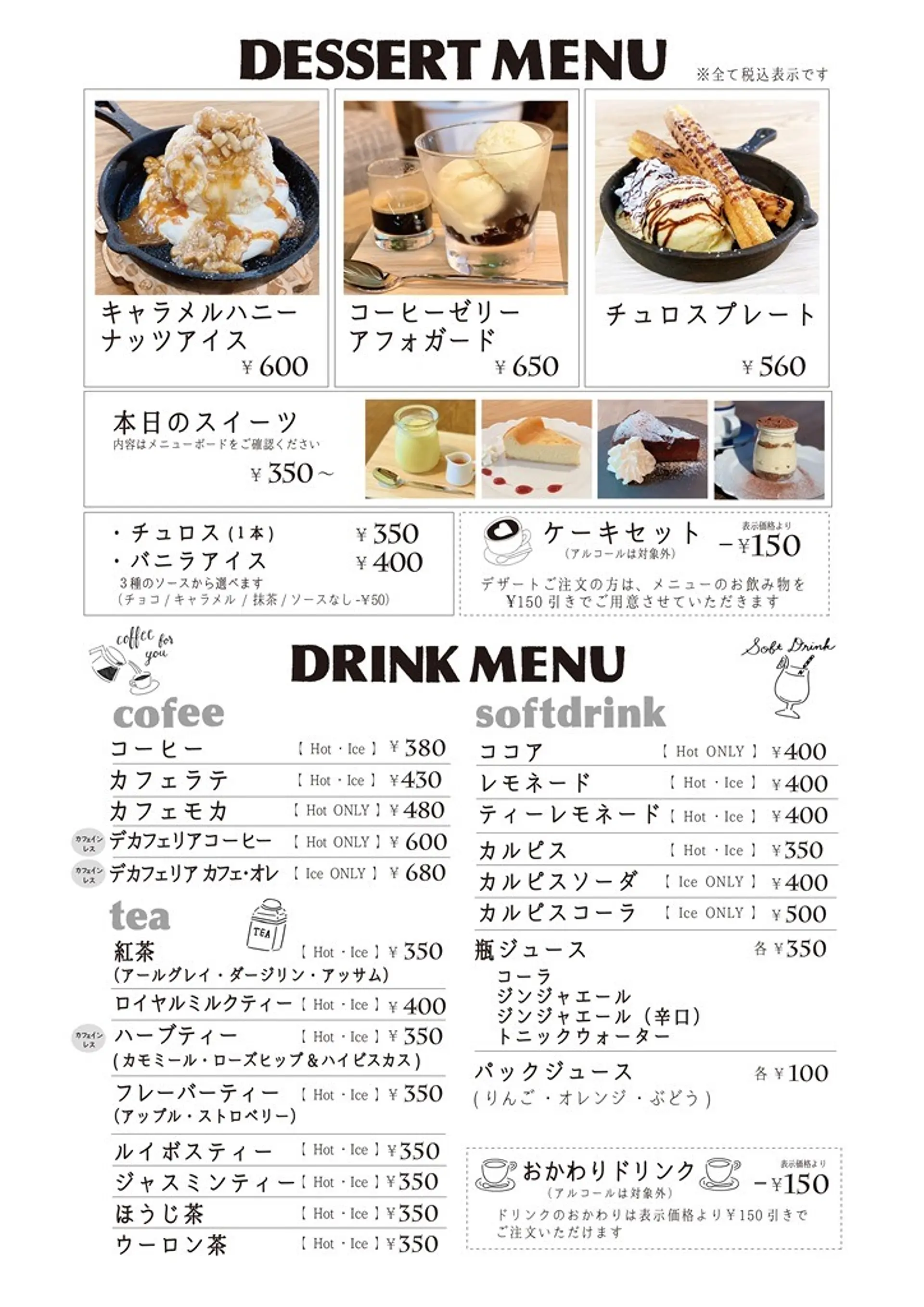 商品や料金等が変更されている場合がありますので、お出かけの際は直接店舗にご確認ください。