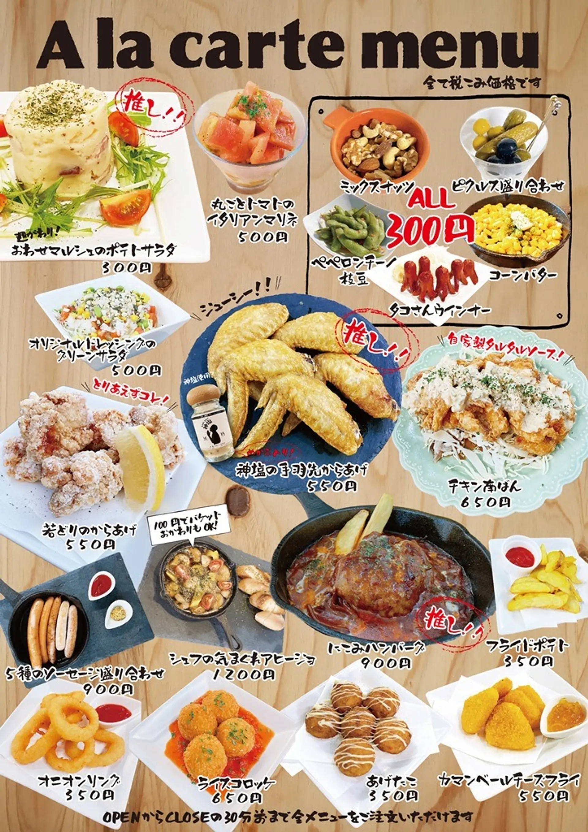 アラカルトメニューも充実。ついつい頼んじゃいます。
