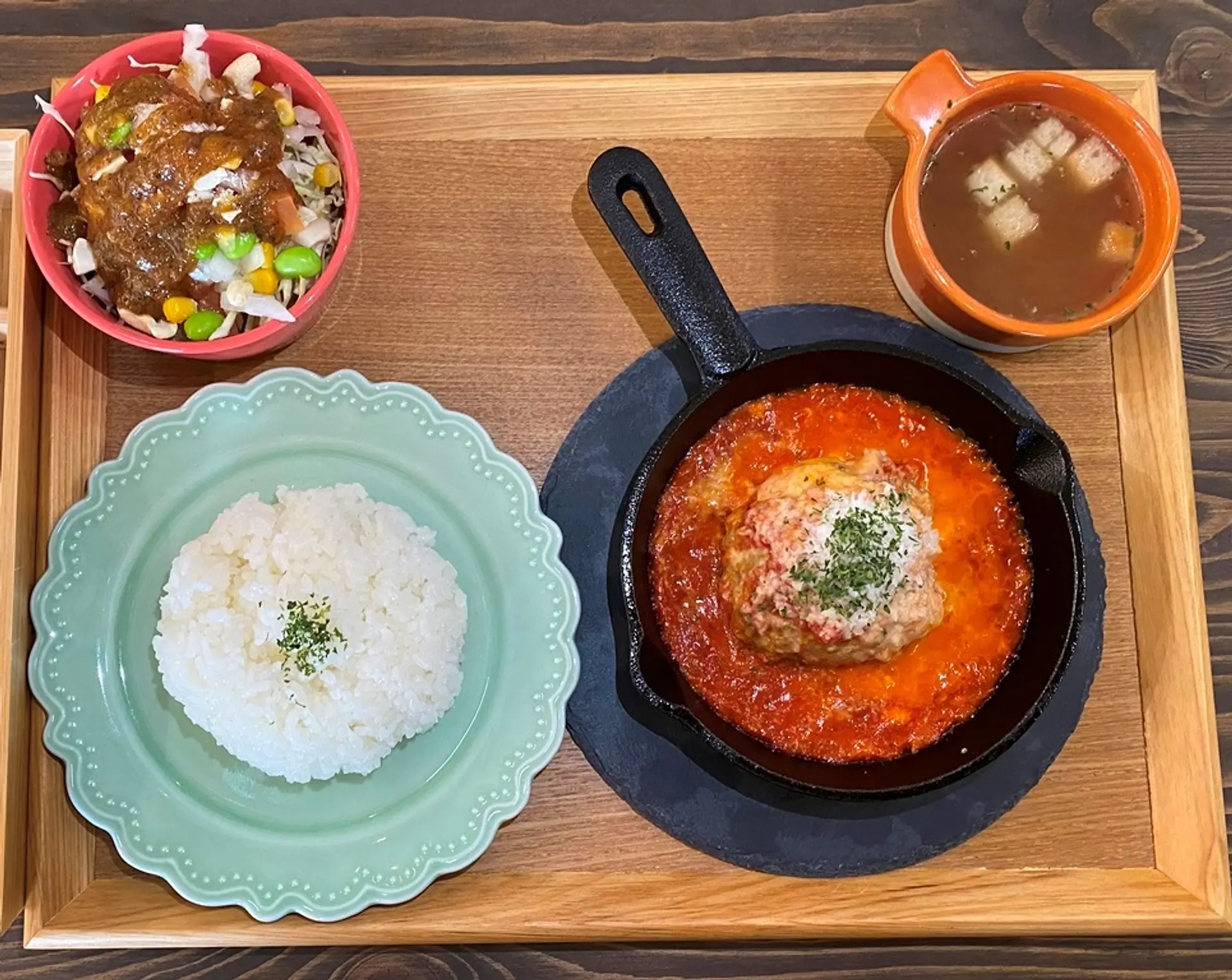 ソースは「デミソース」又は「トマト&チーズソース」から選べます。