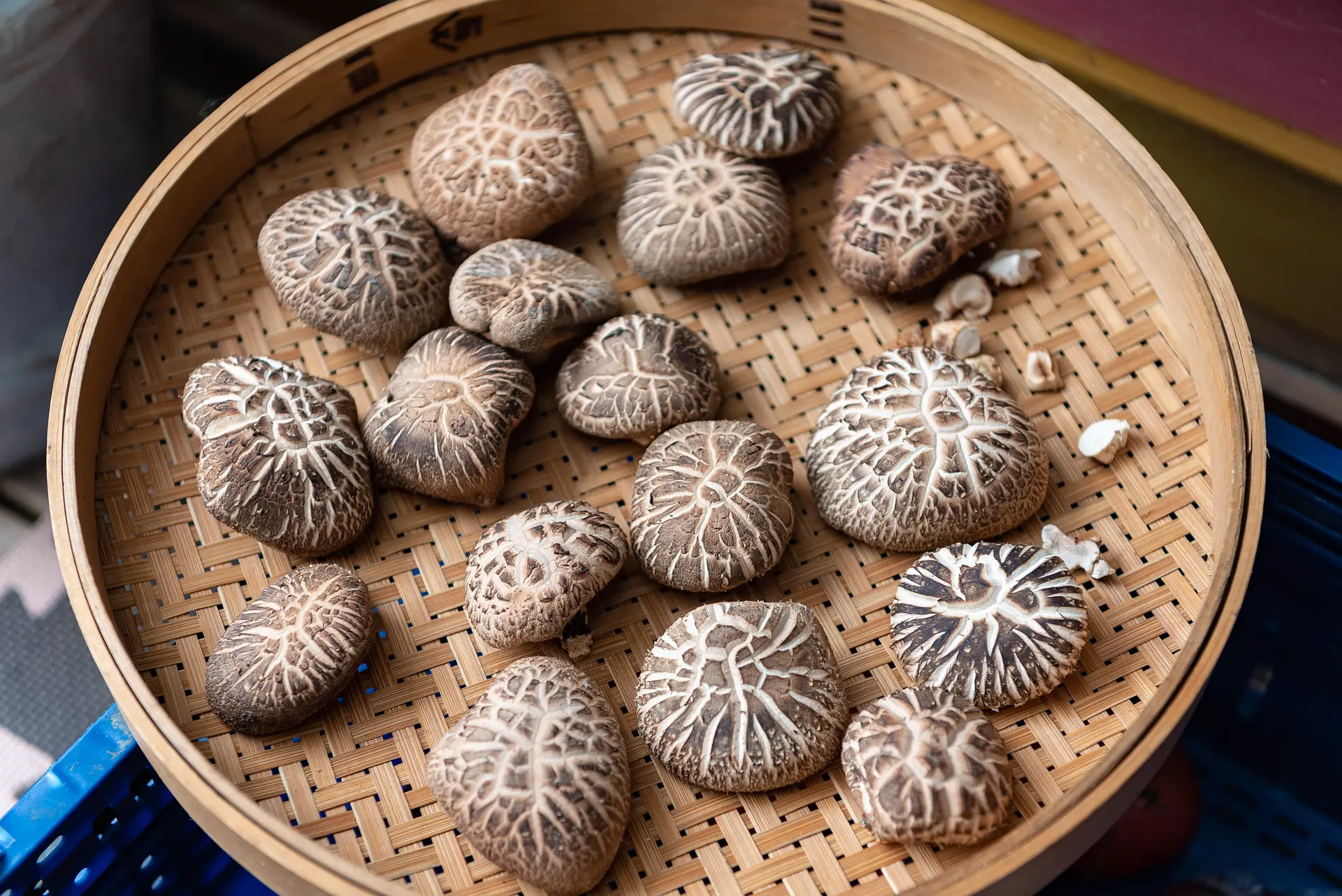 その後は、自家栽培の原木しいたけ(干ししいたけを作っている途中でした)、庭で飼う鴨やニワトリの生みたて卵、3年前に仕込んだ味噌、自家採種をした野菜の苗づくりなど、竹岡さんの暮らしぶりを見せていただき、感心することばかり。