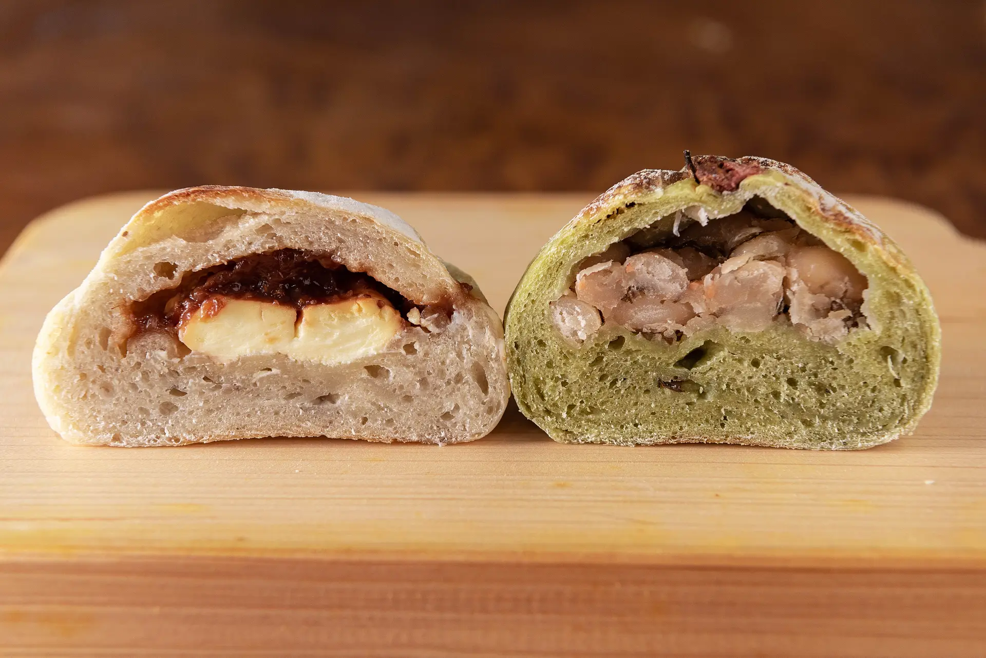 ということで、パン好きの人は特に注目のパンの断面写真をご覧ください(左・いちごクリームチーズ、右・桜あんぱん)。むっちりと詰まったパン生地、豆のつぶつぶが残る白あんなどを見ていただけると思います。