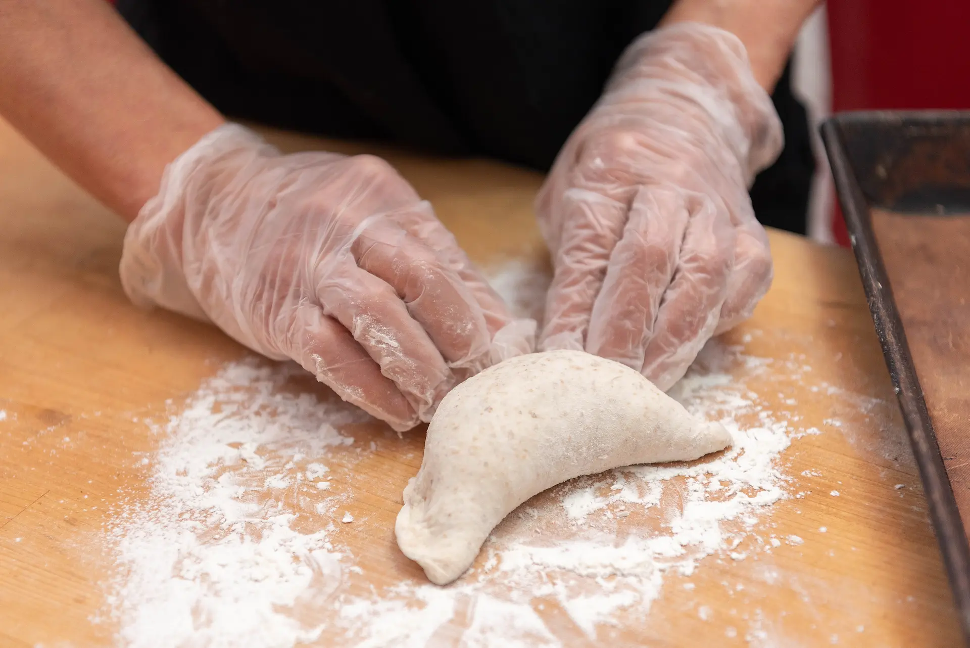 一般的にパン屋さんでは専用のミキサーを使ってパン生地をこねますが、「手でこねる方が生地の状態をよく把握できるので」と、慣れた手ごねでずっと作っているんだそう。その日の天候、気温、湿度などに合わせて水温を変えたりと、長年の経験を活かしたパン作りを行っています。