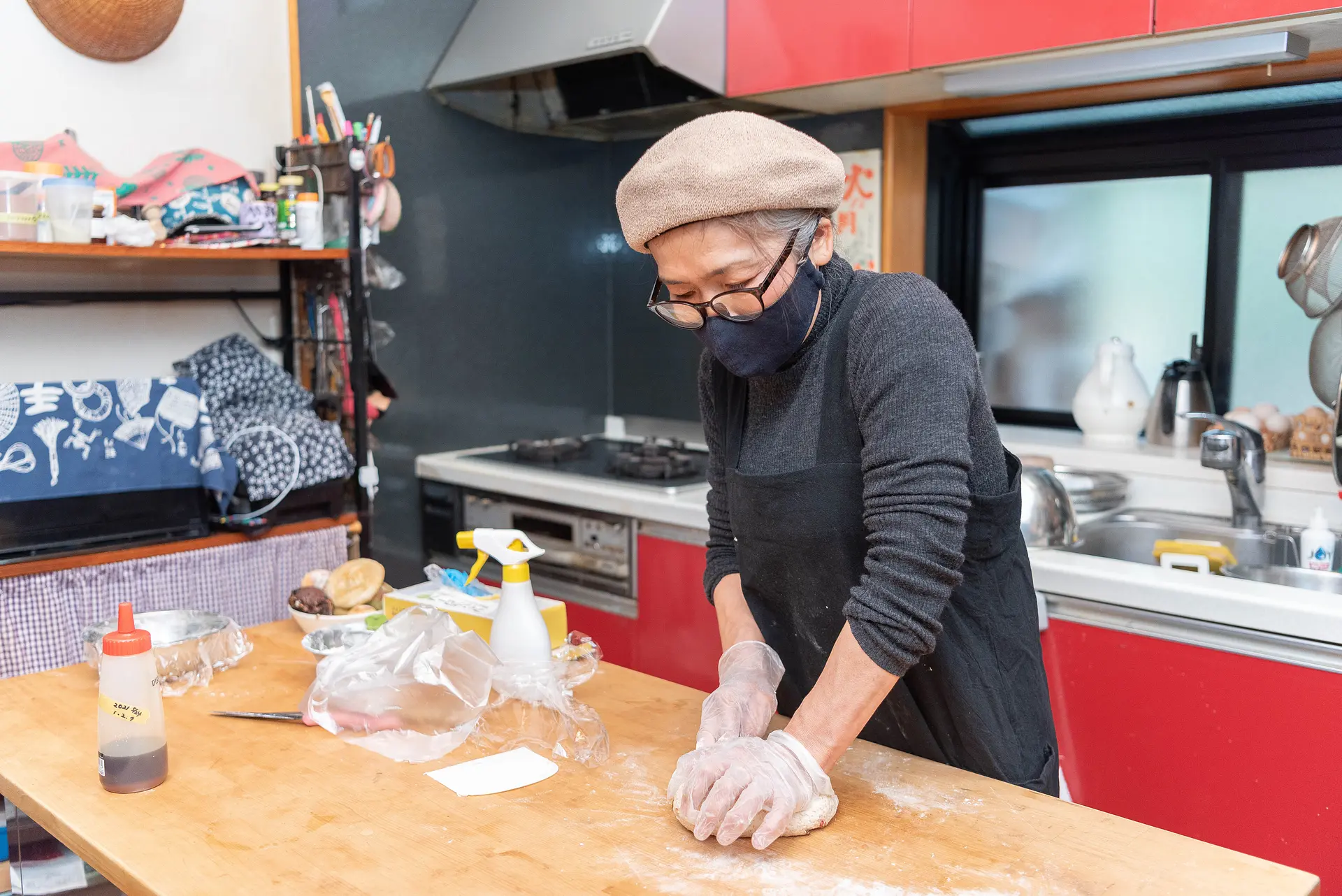 「パン作りを習ったことがないから、これが正しい作り方なのかわからない。恥ずかしいわ」と笑う竹岡さん。
