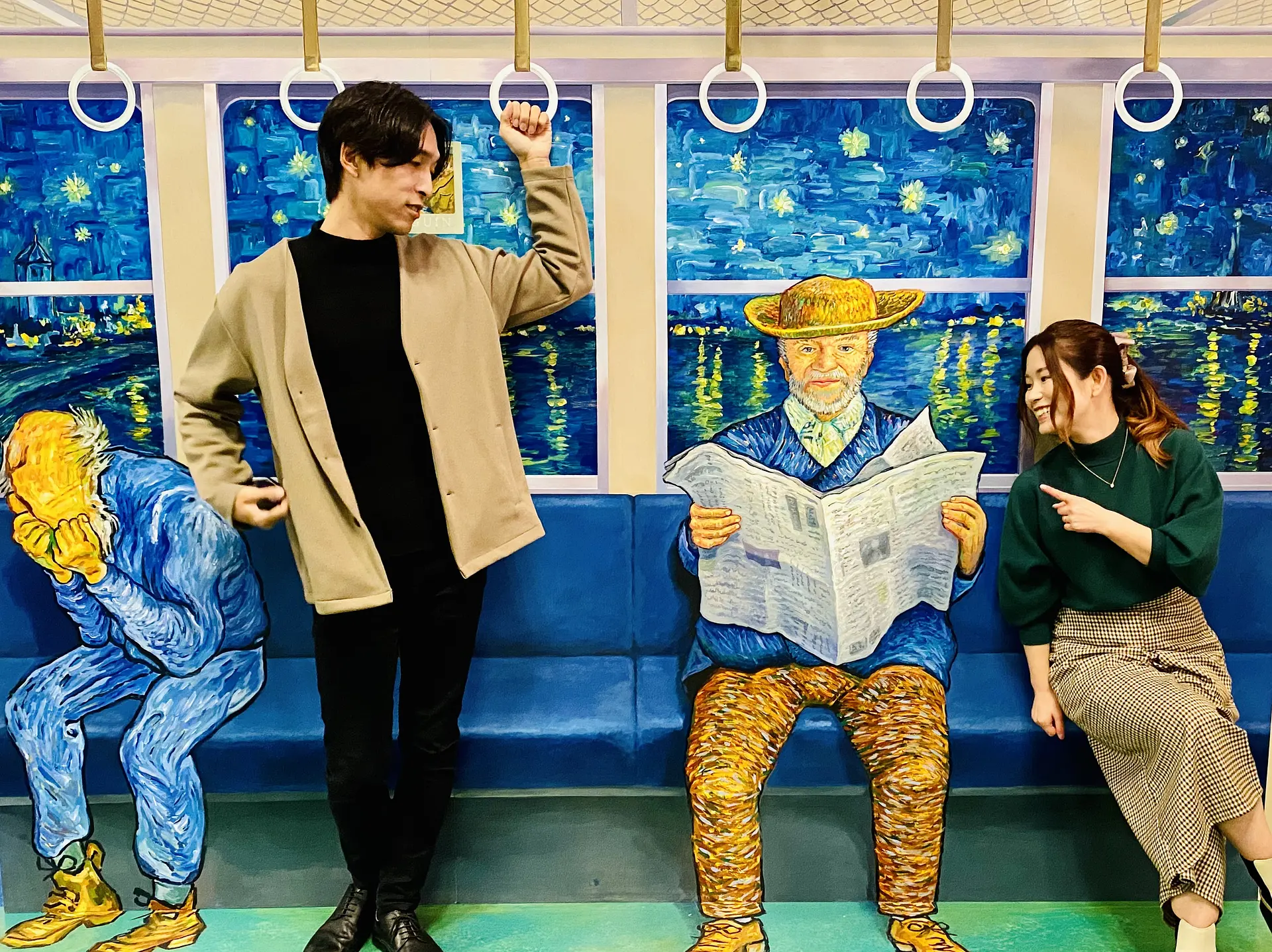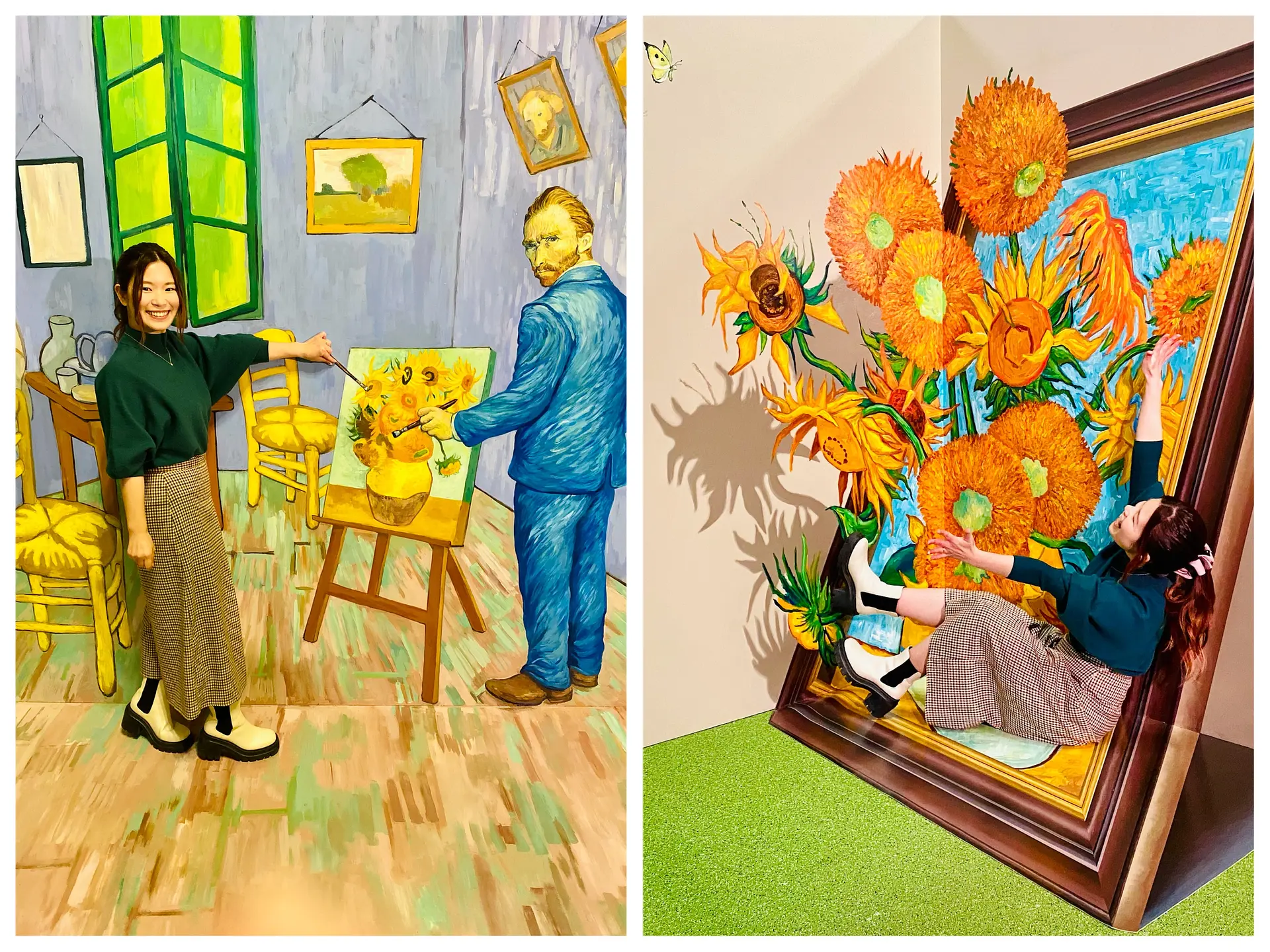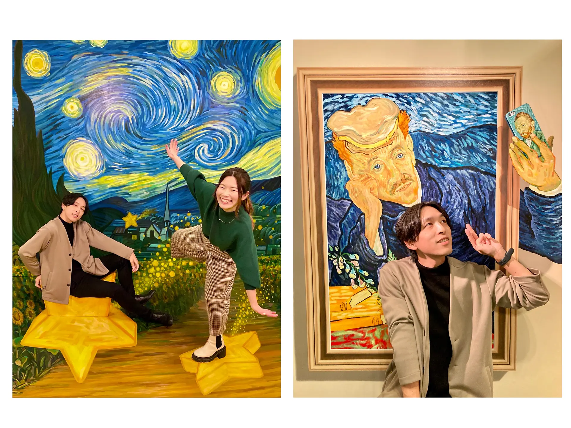 幻想的な作品『星月夜』の中を、流れ星に乗って滑走してみたり、ゴッホの主治医ガシェと一緒に写真を撮ることができます!こんなユーモアたっぷりな写真を撮ることができるのも、トリックアートならではですよね。