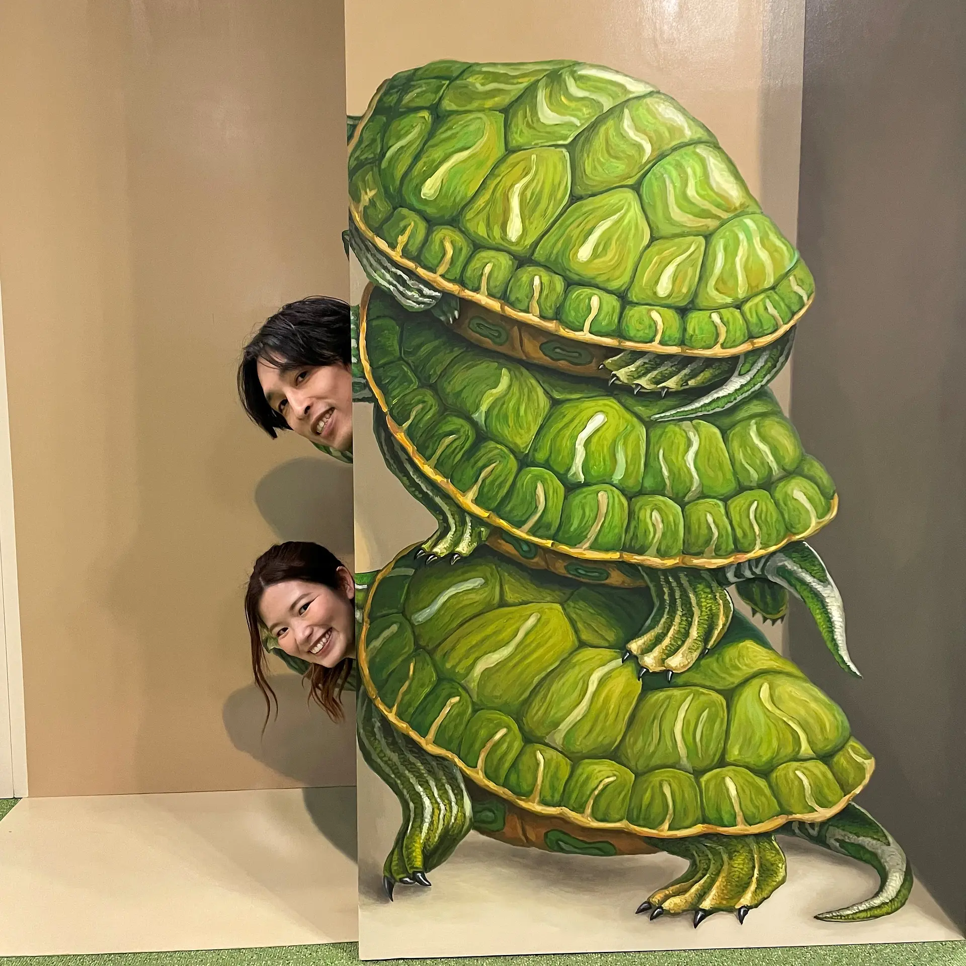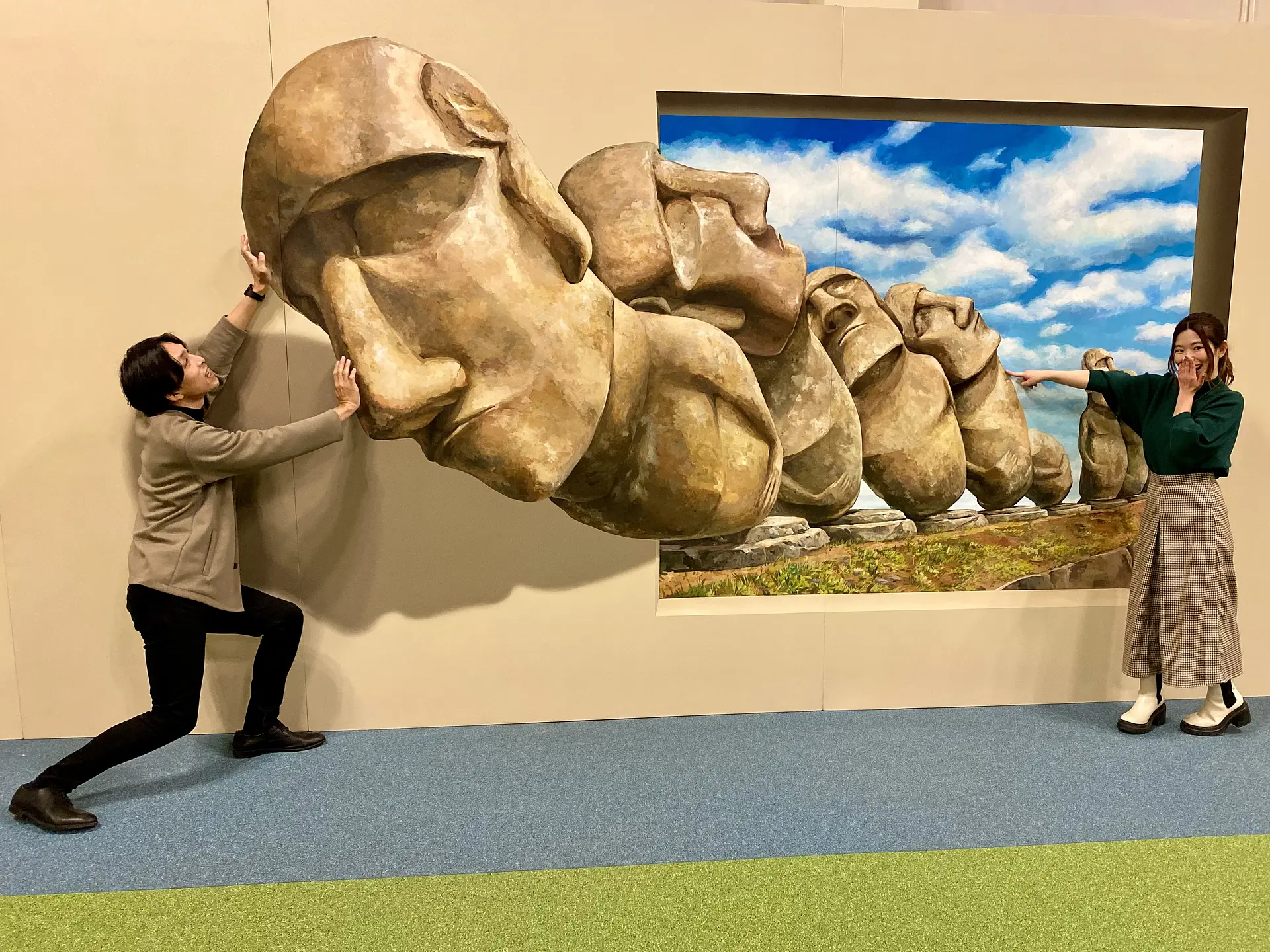 一つの作品でも、見る位置や角度を変えると見え方が変わるのがトリックアートの醍醐味です。