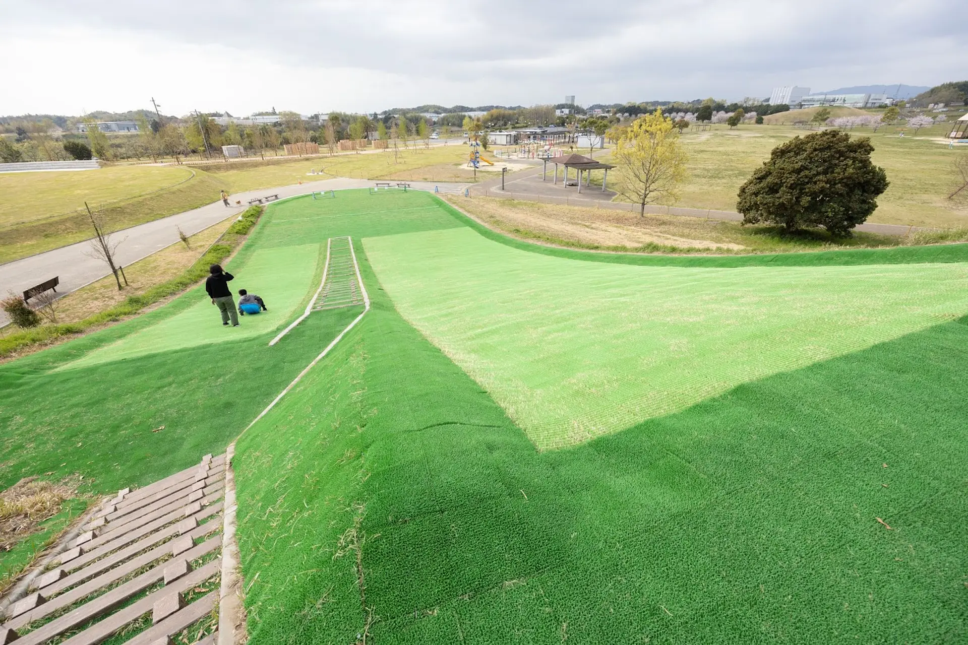 今回のリニューアルで新設された公園施設が「芝そりゲレンデ」です。