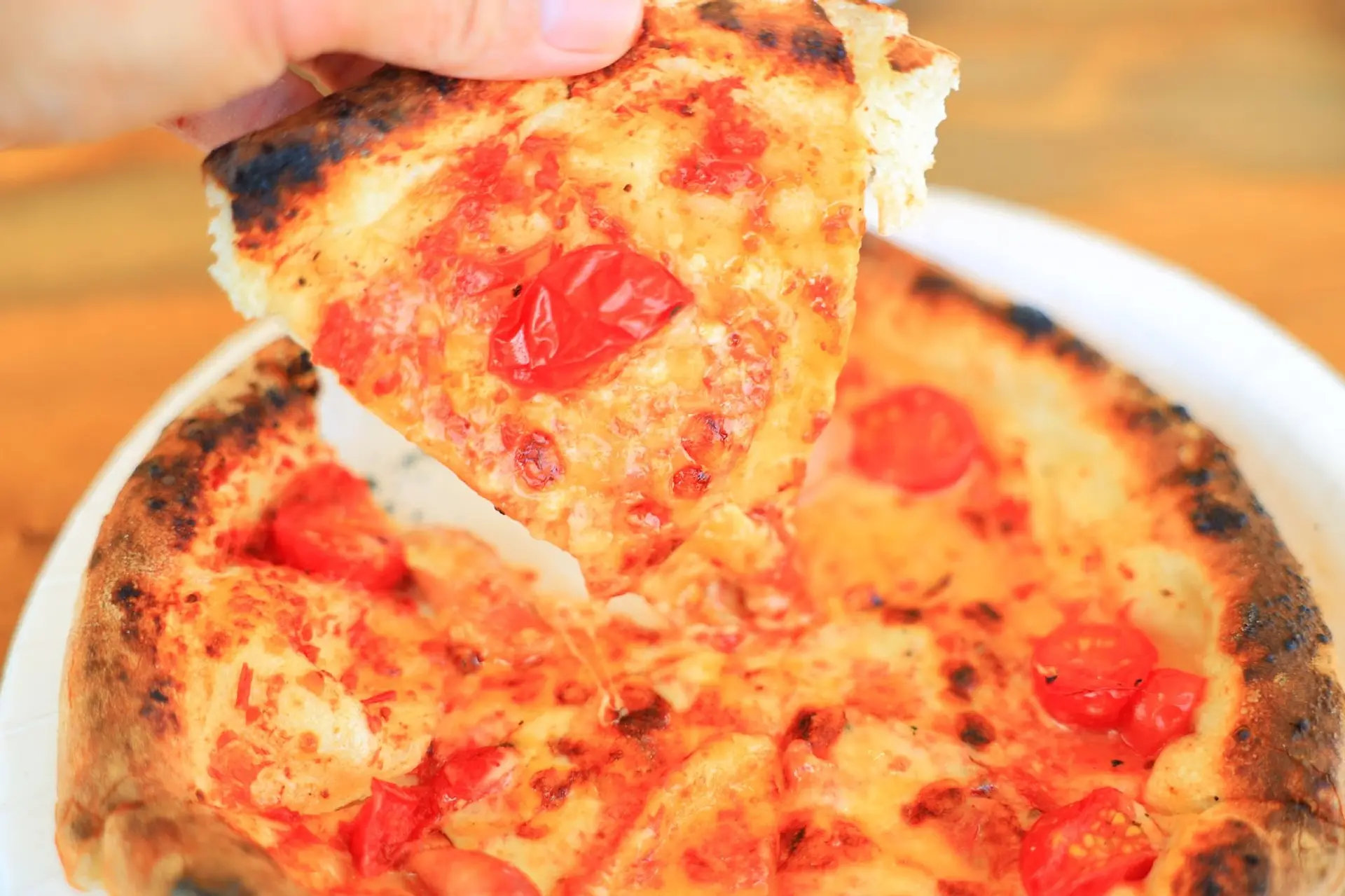 その味わいは... トマトの甘さが口いっぱいに広がり、しっとり食感のピザ生地がたまらない美味しさ!