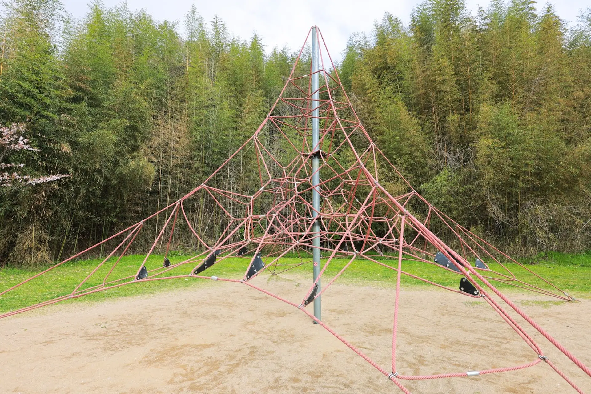 写真は大型のネット遊具で、すぐ隣には幼児向けのネット遊具もありますよ。