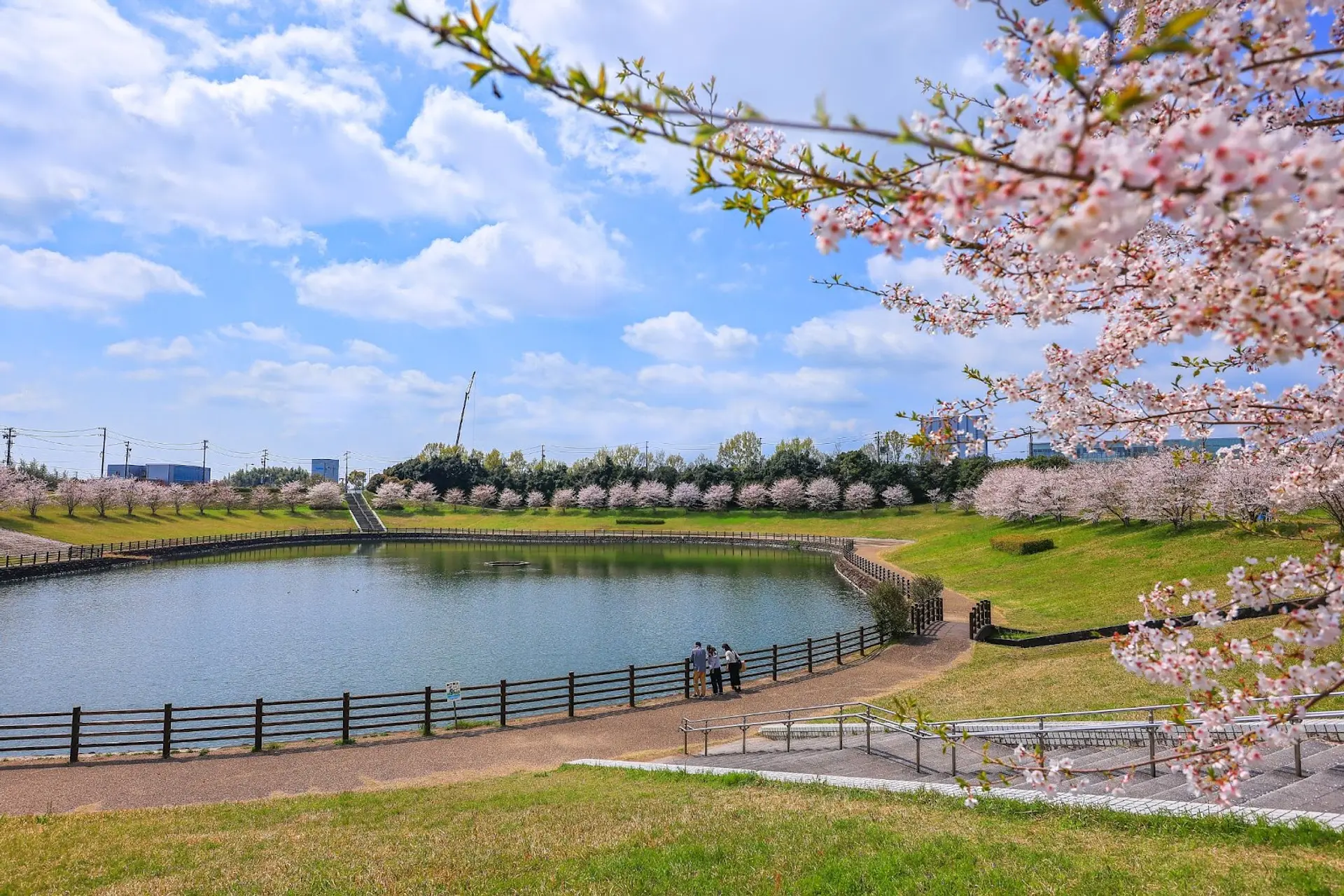 調整池は中勢グリーンパークの入口付近にある溜池で、池の周囲には遊歩道が整備されています。