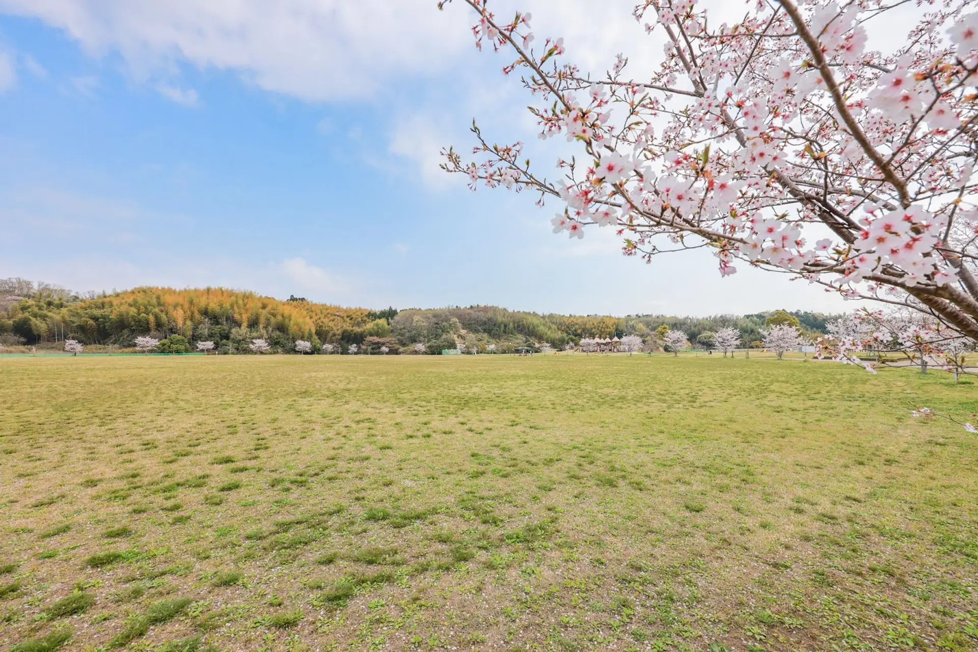 多目的広場は、広大な芝生広場となっており、周囲には遊歩道が整備されています。