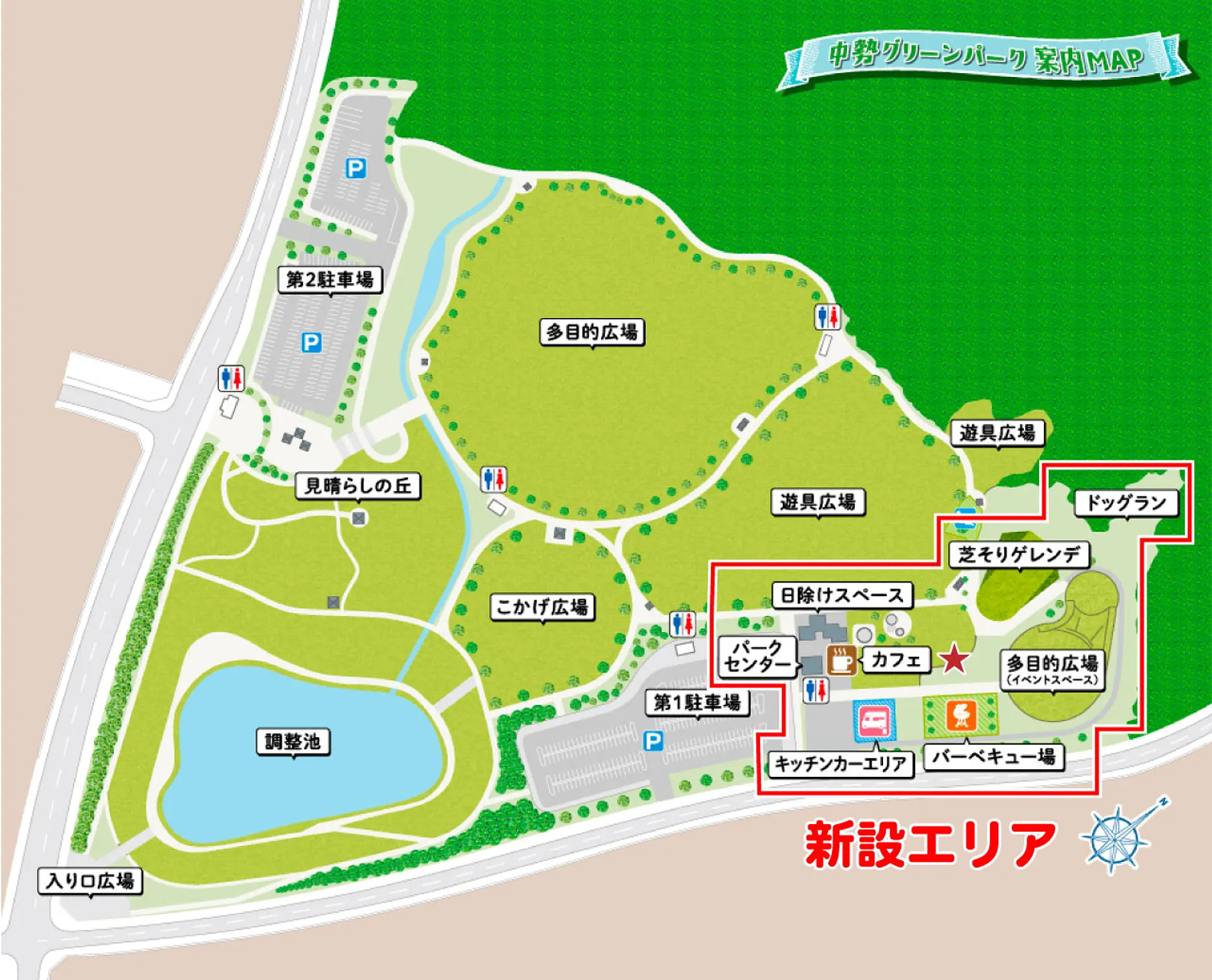 中勢グリーンパークの新設エリアと遊具・施設の情報をお届けしました。