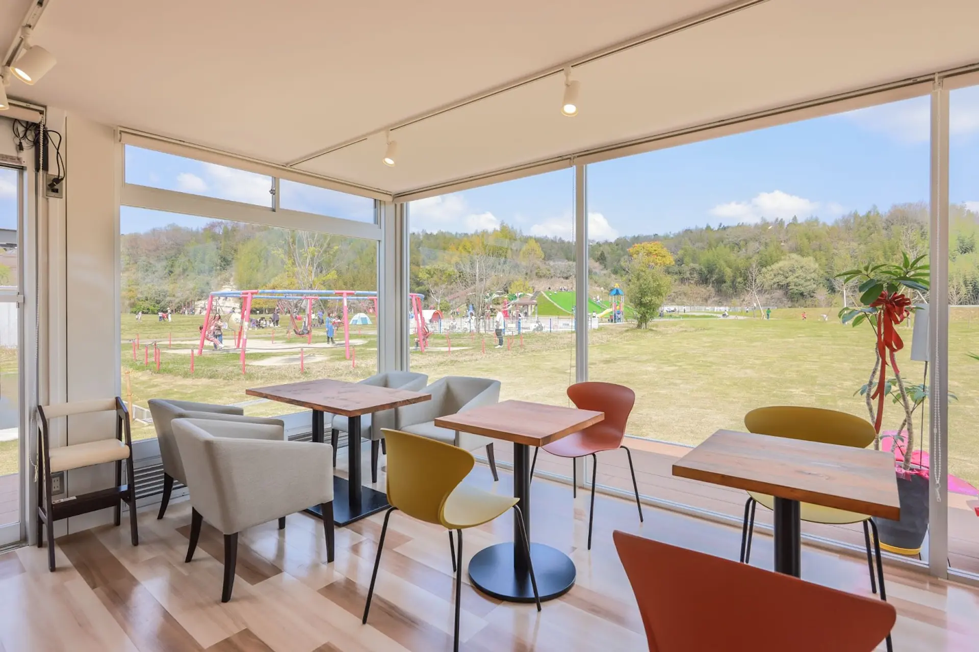 どの席も窓際に位置しており、ガラス張りの大きな窓からは心地よい光が降り注ぎます♪