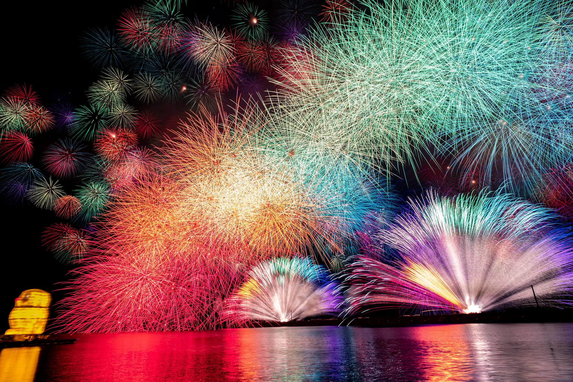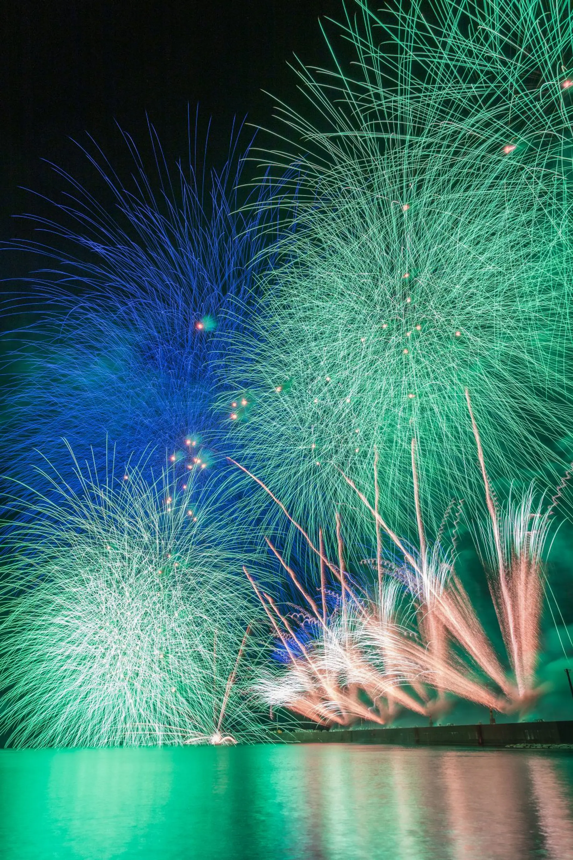 夜空を彩る海の孔雀「花火」