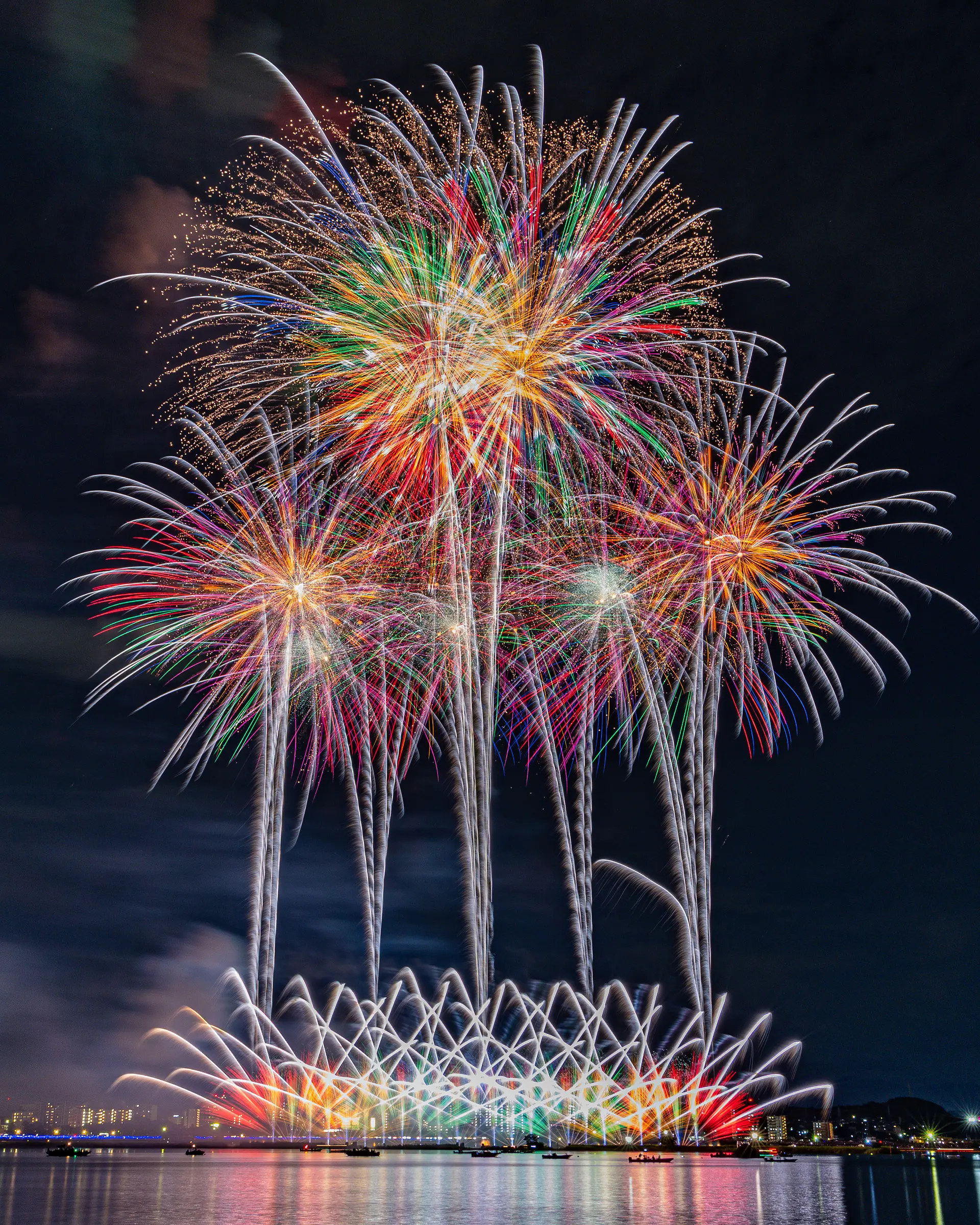 ゆったりとした壮大な音楽、アップテンポな流行りの音楽など現代の技術と伝統的な花火文化との競演を楽しむことができます。