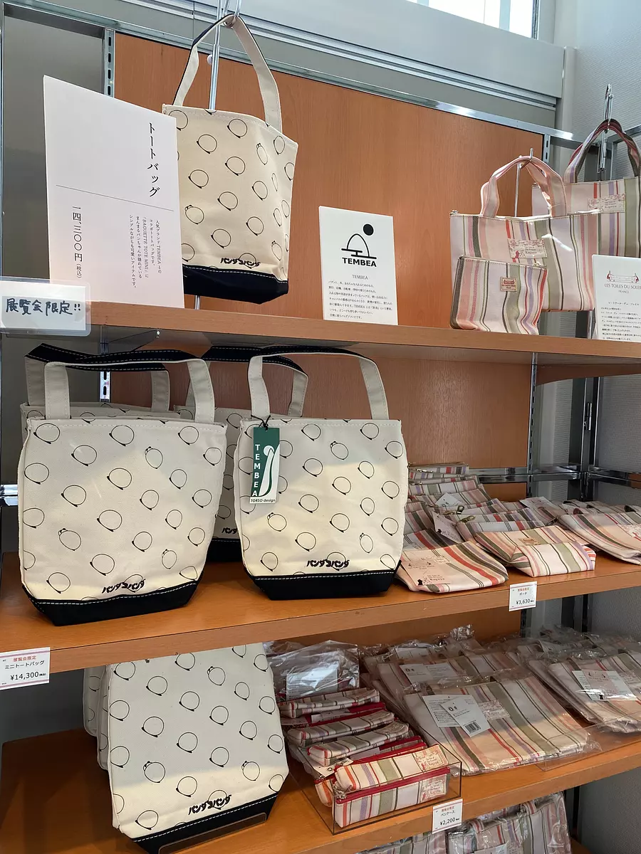 スタジオジブリの作品をはじめ作中に登場するキャラクターが描かれたメモ帳やクリアファイルなどの文房具、豆皿やグラスなどの食器類のほか、人気ブランド『TEMBEA』とコラボしたトートバッグなどかわいらしいグッズが多数販売されています。なかには展覧会限定のものも!?