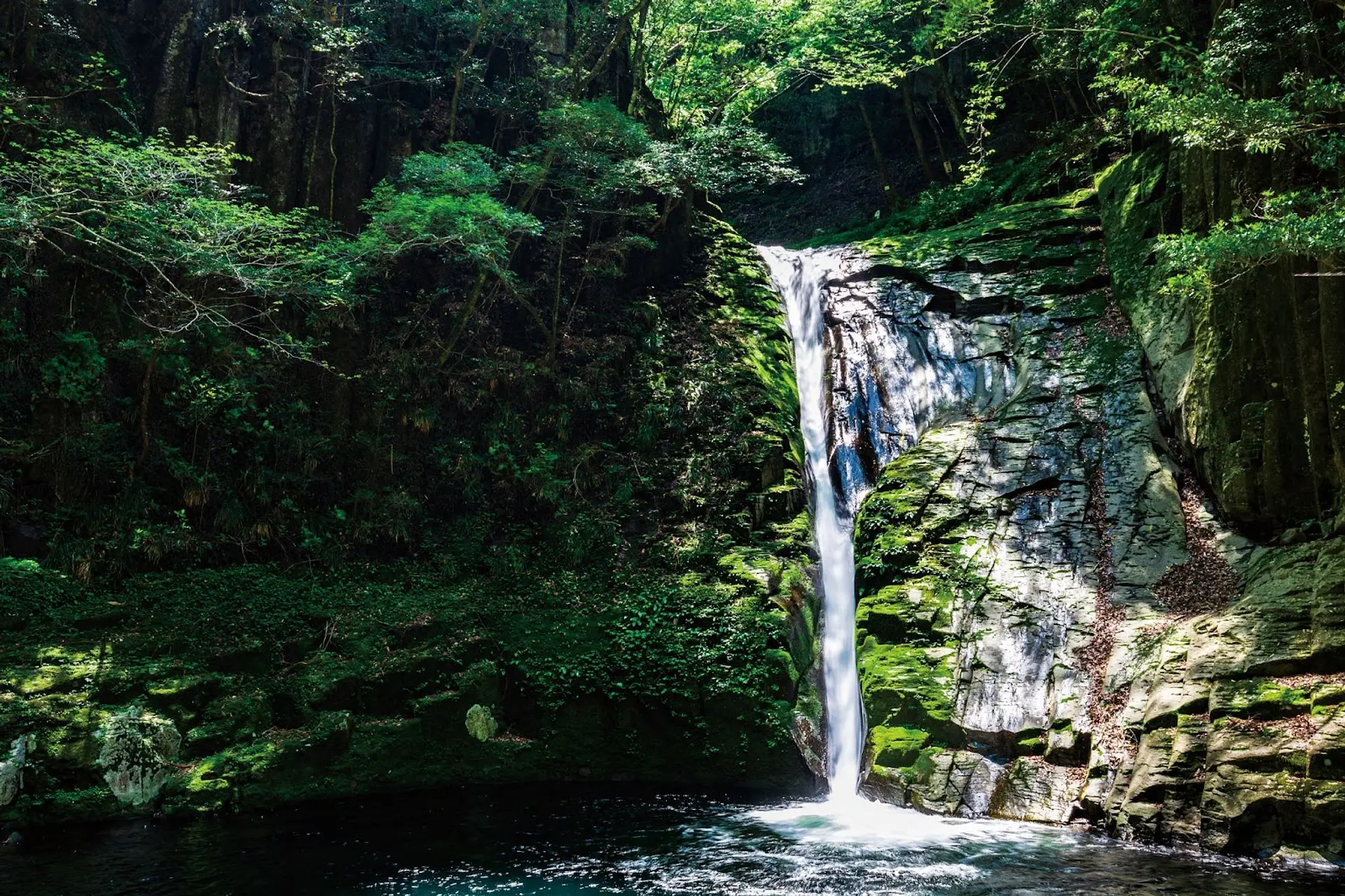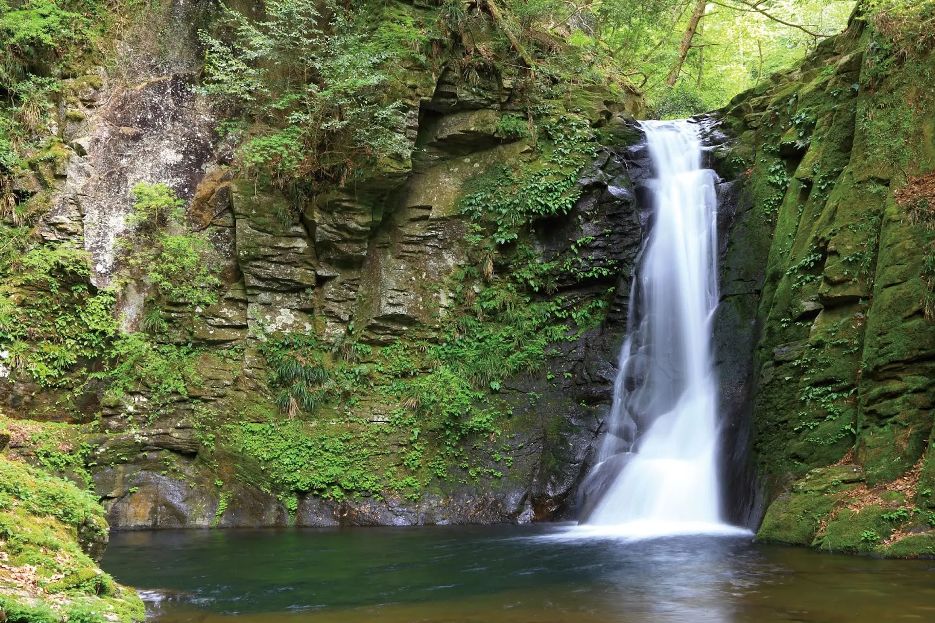 高さは不動滝と同じ15メートルで、澄んだ滝壺が広がります。