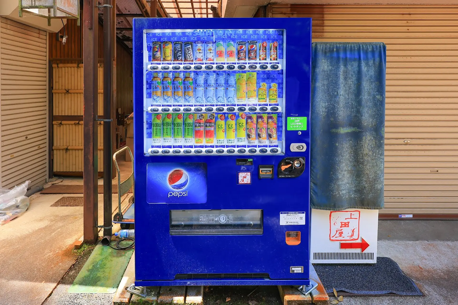 自動販売機は駐車場周辺に点在し、入山すると飲み物を購入できる場所はありません。