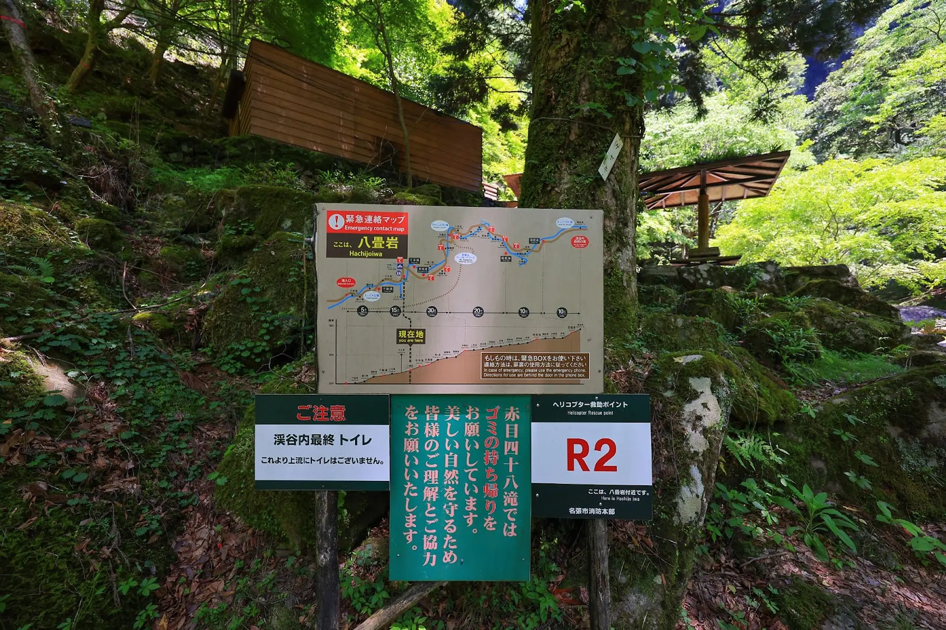 渓谷入口から徒歩15分ほどの距離で、これより先にトイレはないのでご注意ください。