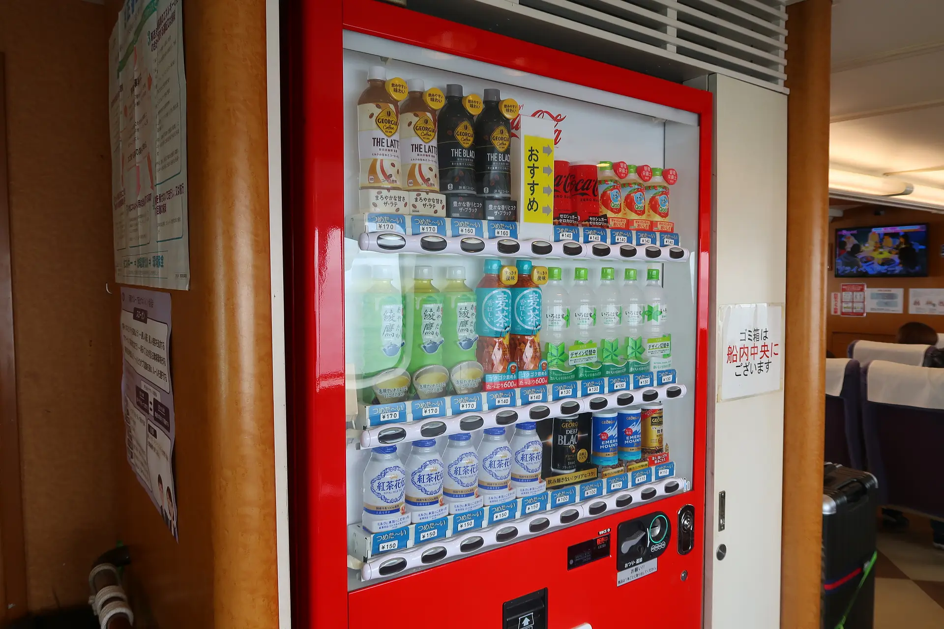 船内には自動販売機もあり、ドリンクを買うことができました。