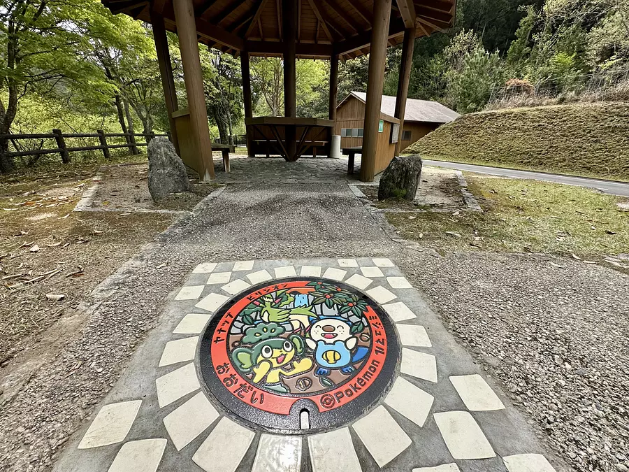 すると、東屋の手前に大台町の『ポケふた』が登場します!