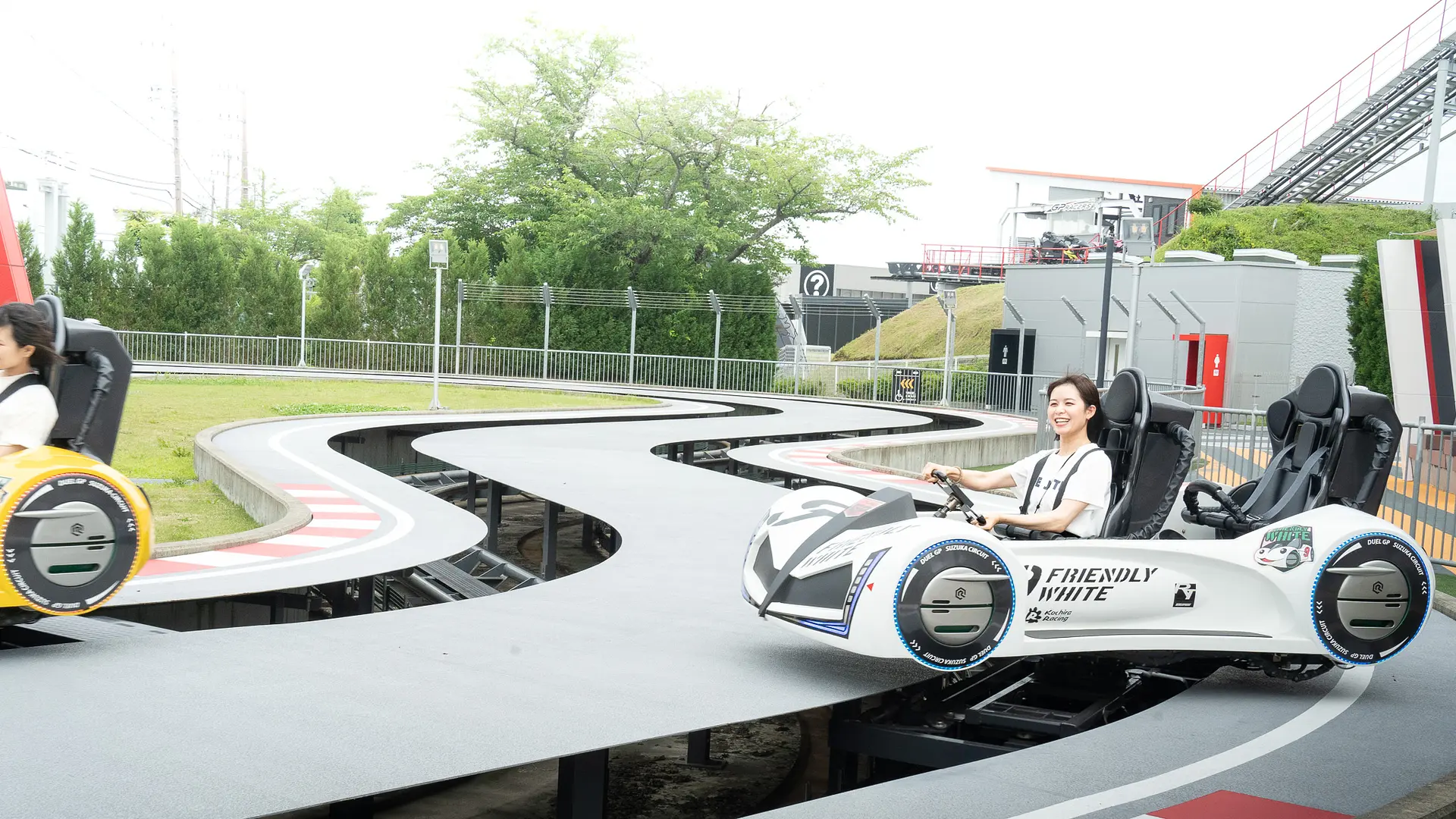 テクニカルなコース上を、ハンドル操作を駆使してドリフトしながら疾走する爽快感溢れるアトラクション。