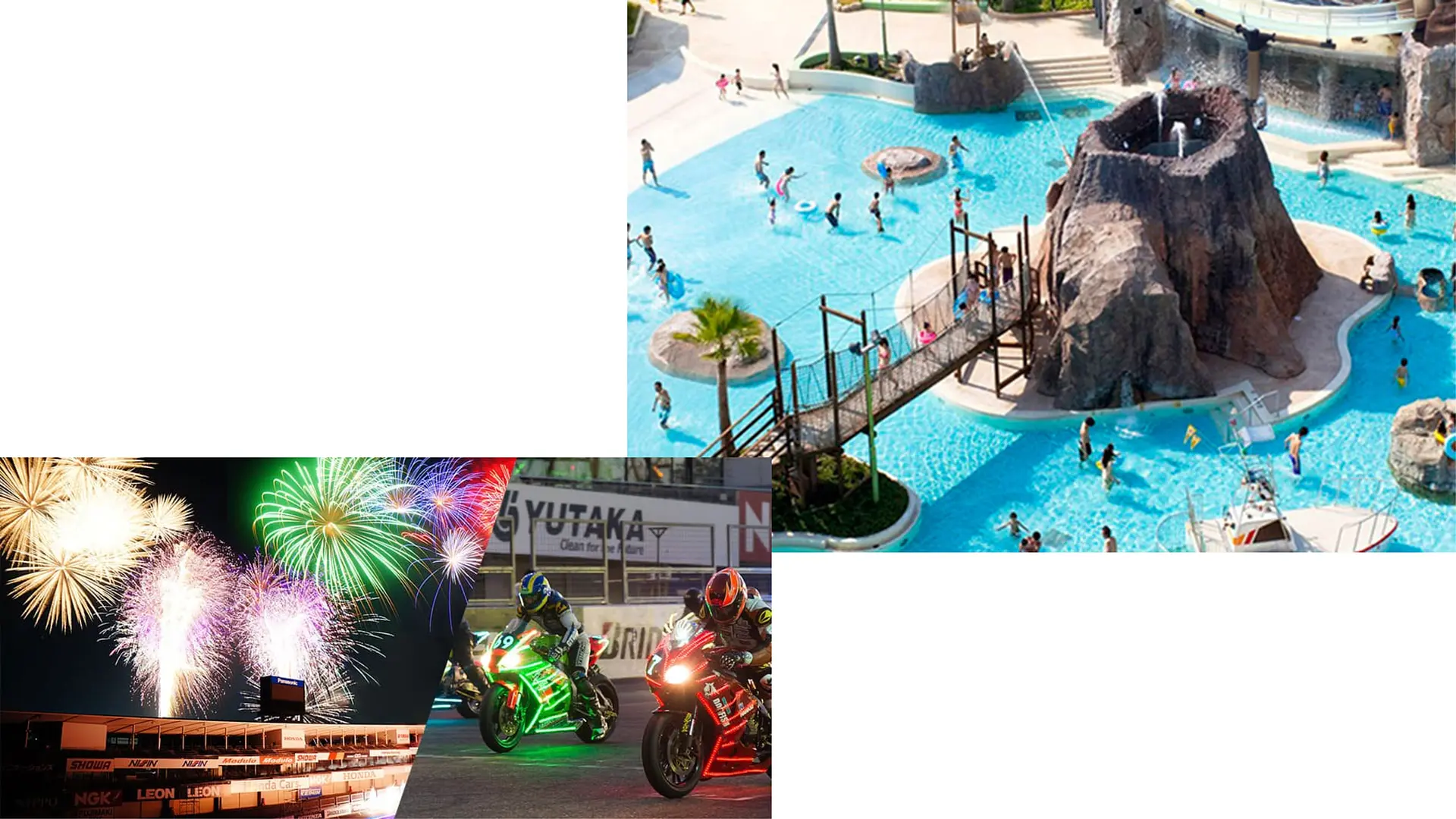 今回の取材ではまだオープンしていませんでしたが、夏の鈴鹿サーキットはみんなの冒険プール「アクア・アドベンチャー」や「花火 ザ パフォーマンス」も!