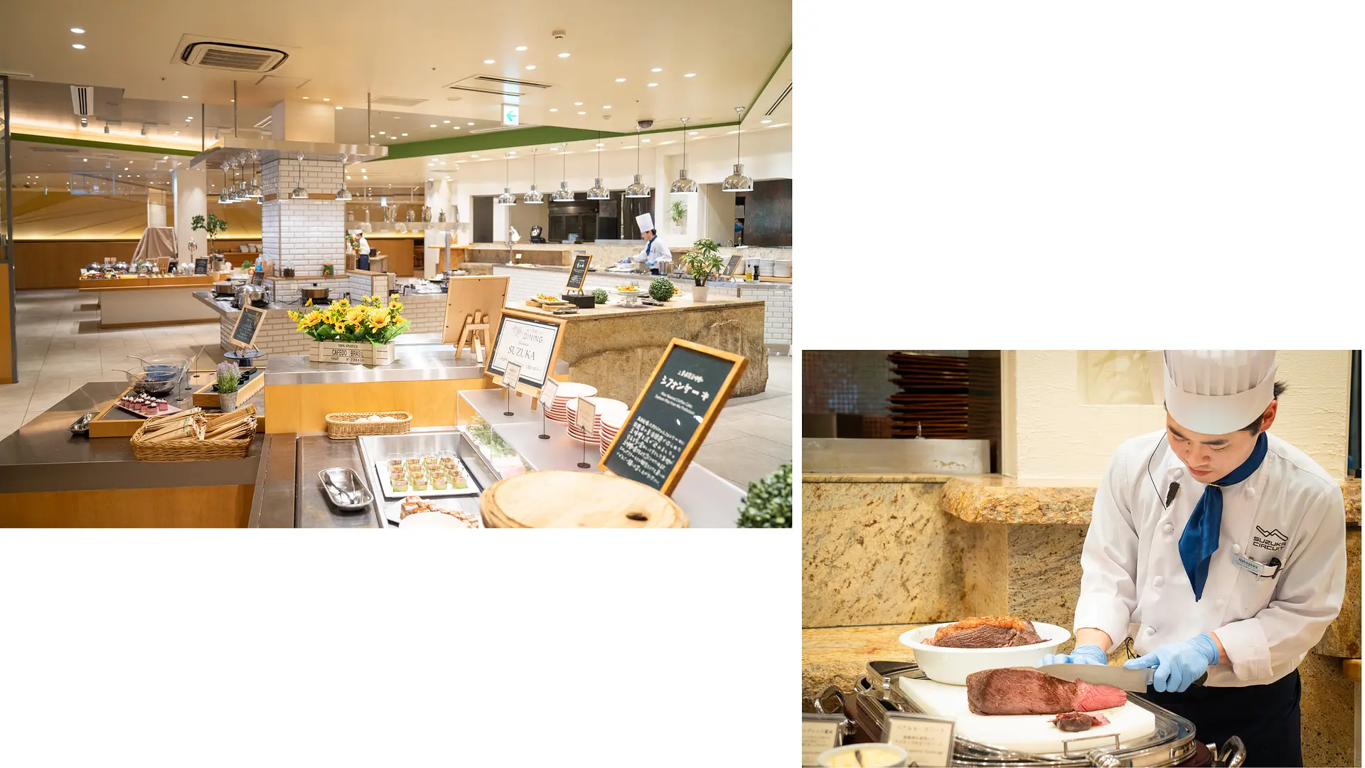 鈴鹿サーキットホテルの夕食は、和・洋・中の各料理をホテルシェフが提供する「THE DINING」のバイキング。