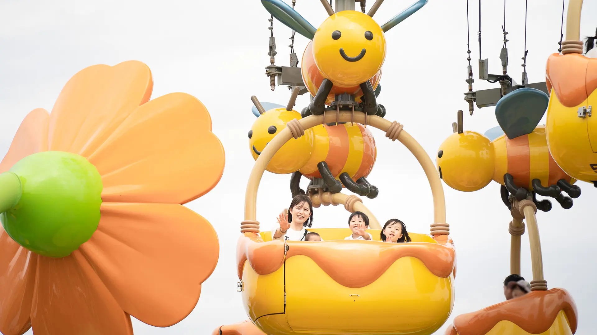 上空のお花にはカメラが設置されており、子ども達のワクワクがつまった表情を写真に収めてくれるのも嬉しいポイントなんです。