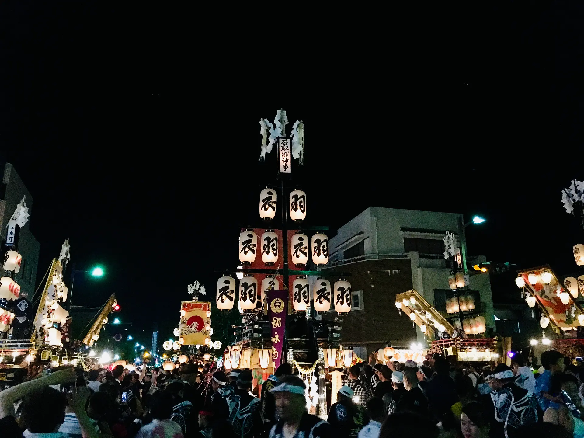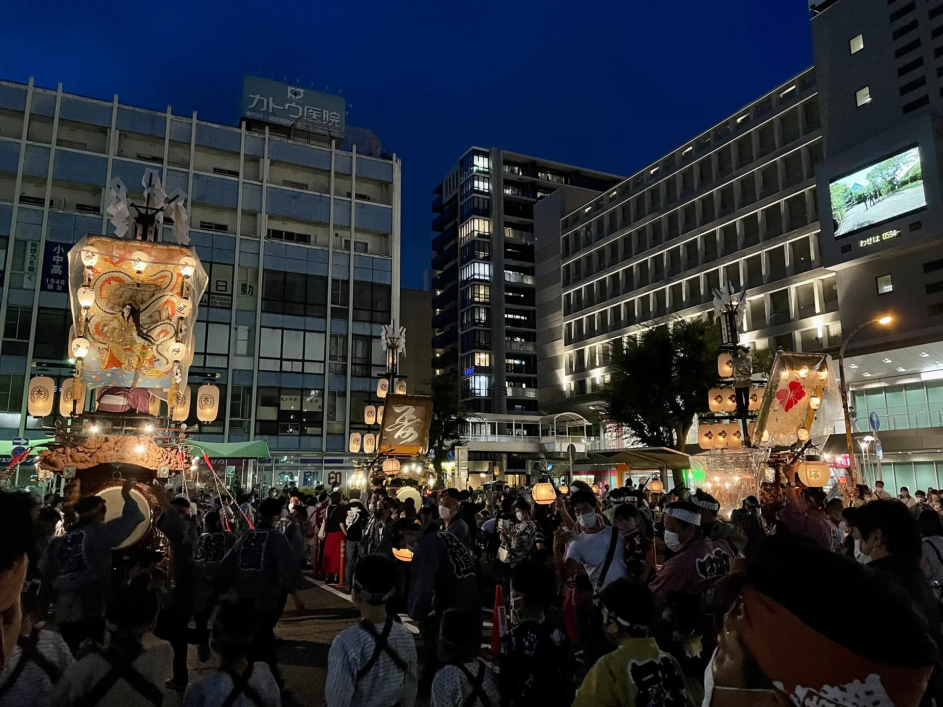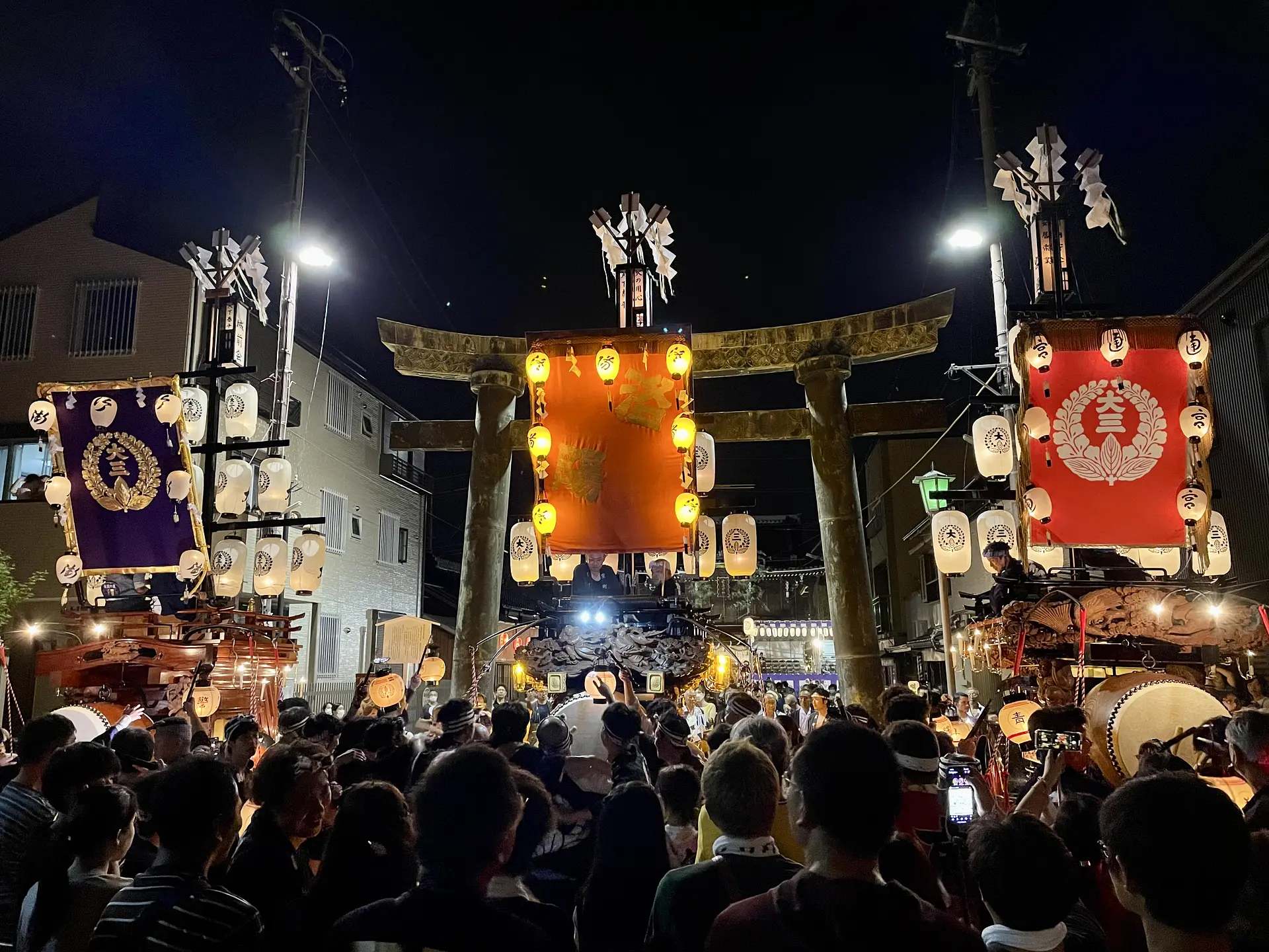 参加するすべての祭車が8分ごとに渡祭を行い、末番が終わる頃には0:00近くになることも。ずっと見ていたら終電を逃してしまった!ということがないようにお気を付けくださいね。