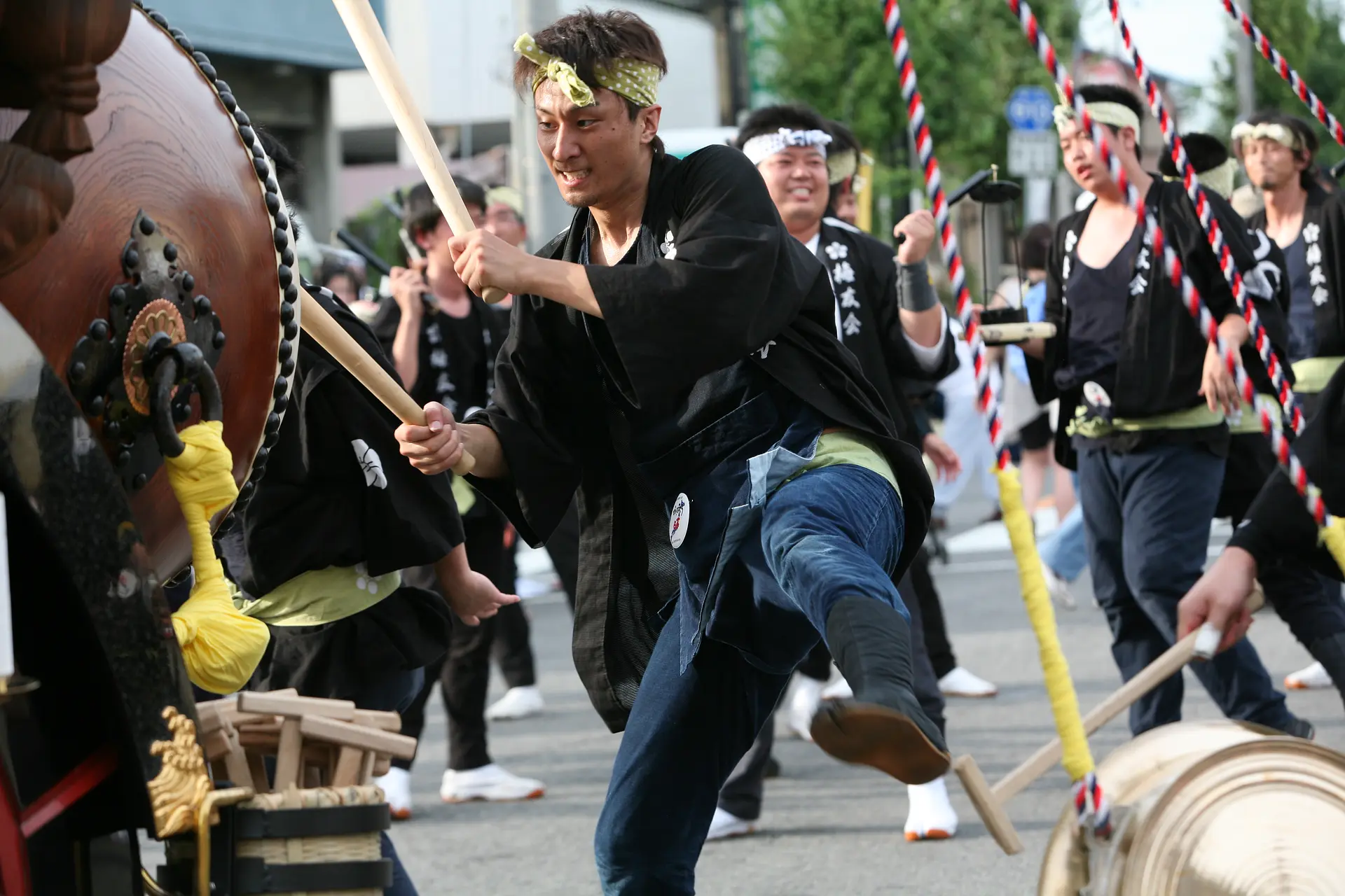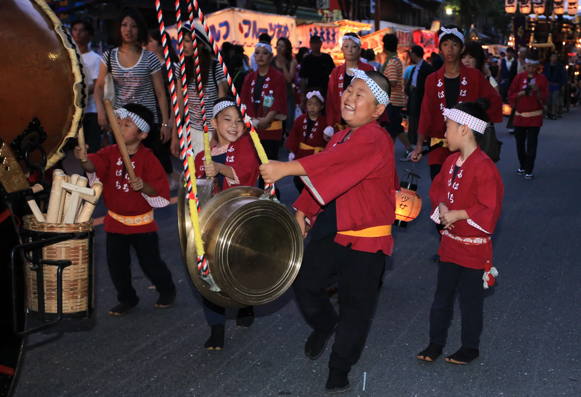 鉦(かね)や太鼓を打ち鳴らし巡行する様相は「日本一やかましい祭り」とうたわれることも!