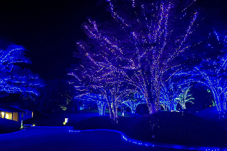 イルミネーションが見られる時間が、日によって異なります。19:00点灯で21:00終了なら2時間ですが、18:00点灯で22:00終了の日なら4時間見ることができます。行く前に、営業時間と点灯開始時間をチェックすることをお勧めします。