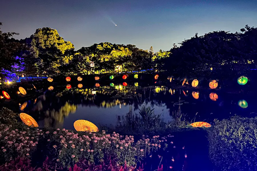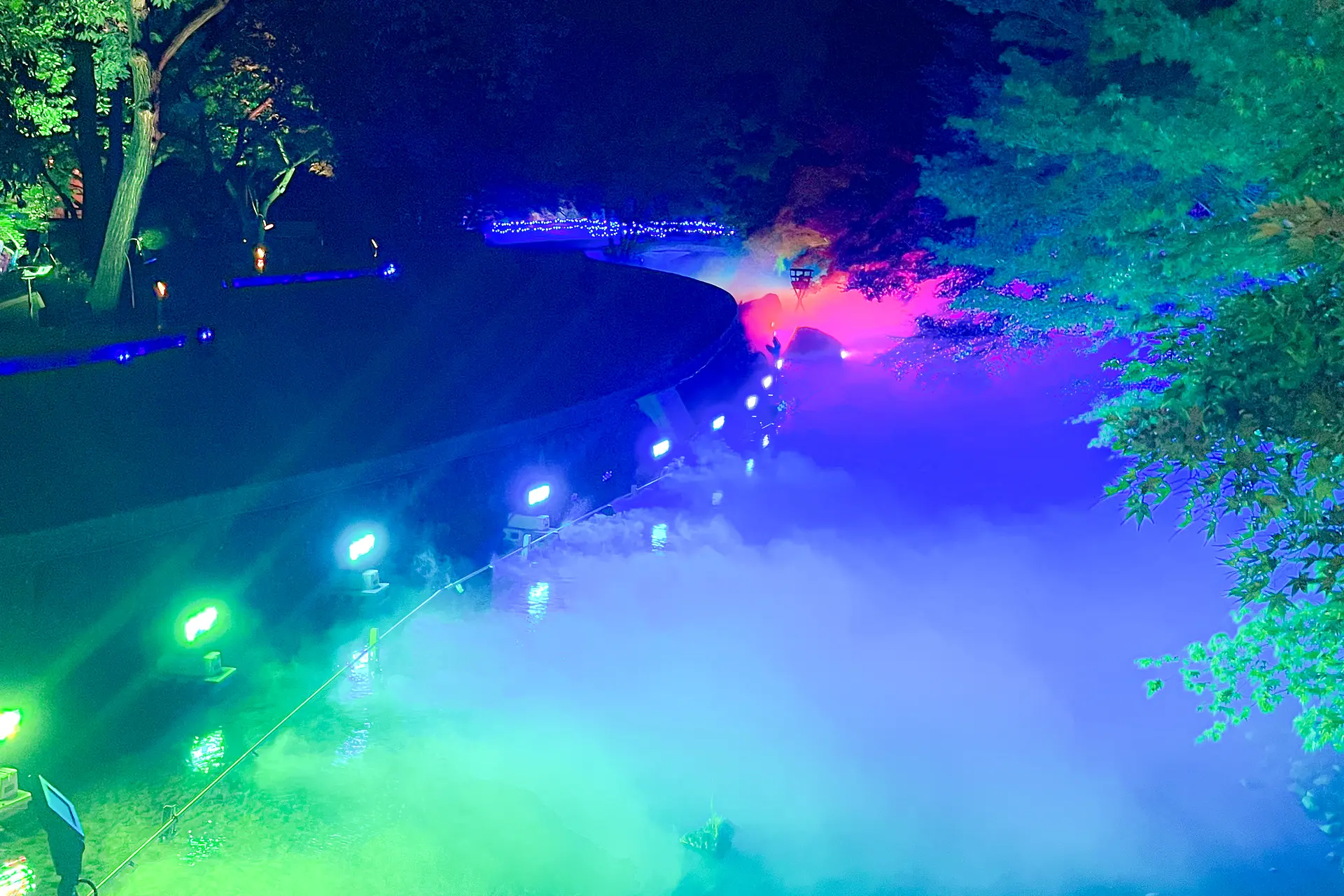それに加えて、なばなの里中央の池を中心に、天の川をイメージしたイルミネーションや和の雰囲気を感じさせる竹灯籠や和傘などがあり、夜風に揺れる木々と共に幻想的な灯りで美しく彩られ、涼しい夏の夜をゆっくりと楽しむことができました。今回はこの素晴らしいイベントの徹底リポートをお届けします。