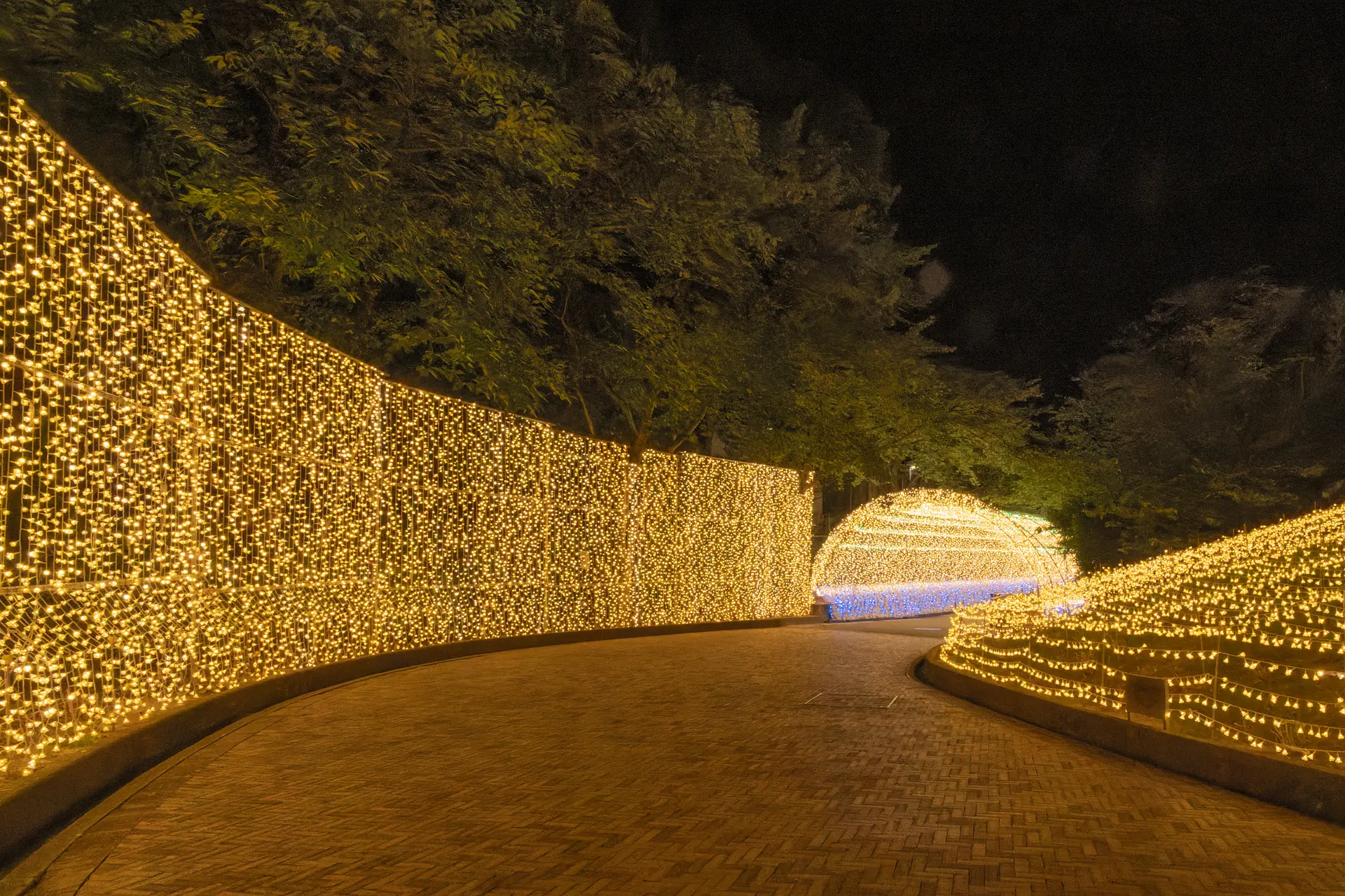 なばなの里と言えばココ。夏もやっています!全長約200mある「世界の絶景」にも選ばれた人気エリアです。無数のLED電球で作られた光のトンネルは、花びら形のLEDが柔らかな光を演出しています。その規模に圧倒されるスケールは、冬だけでなく夏も楽しめる点がうれしいところです。
