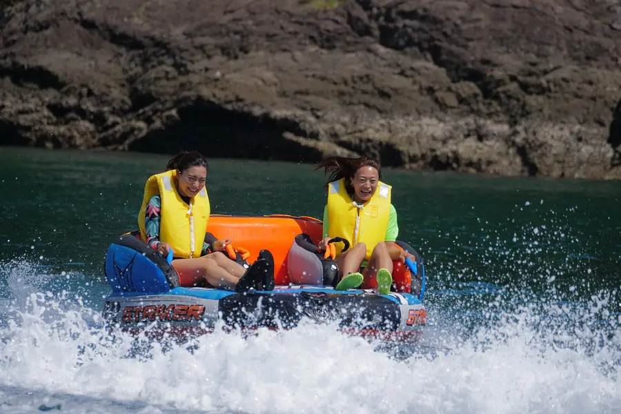 水しぶきを浴びながら波を飛び越えるスリルと、スピード感が魅力です。