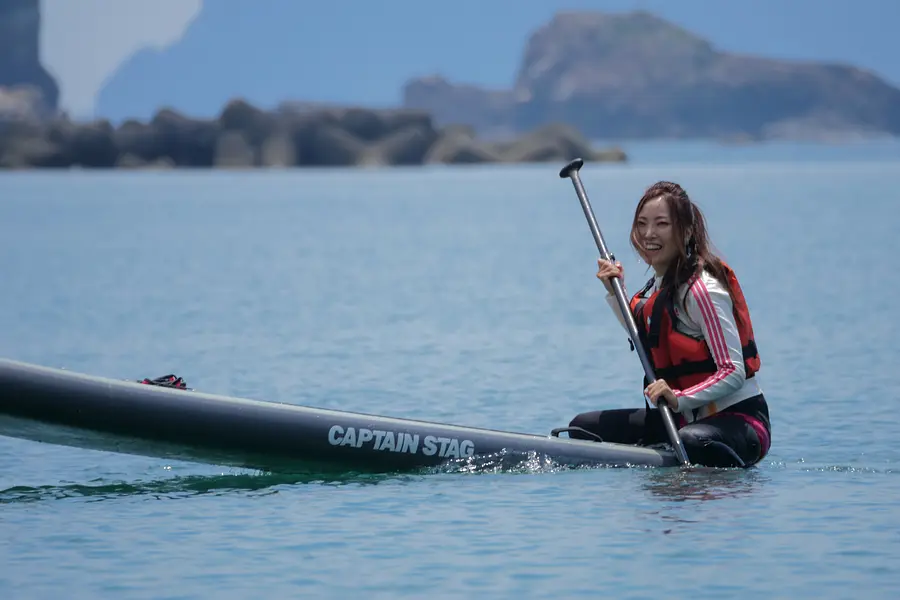 レッスンを受ければ初心者でも比較的簡単に立つことができ、内海のため波静かな城ノ浜海水浴場はサップデビューにピッタリ。