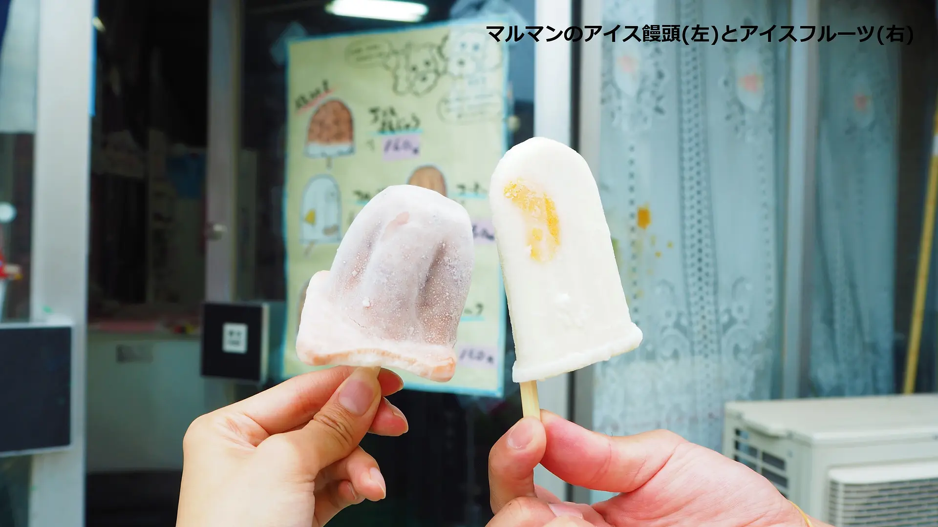 桑名市役所近くの静かな住宅街にあります。アイス饅頭だけではなく、ミカンとパインの果肉入りアイスフルーツもあります!