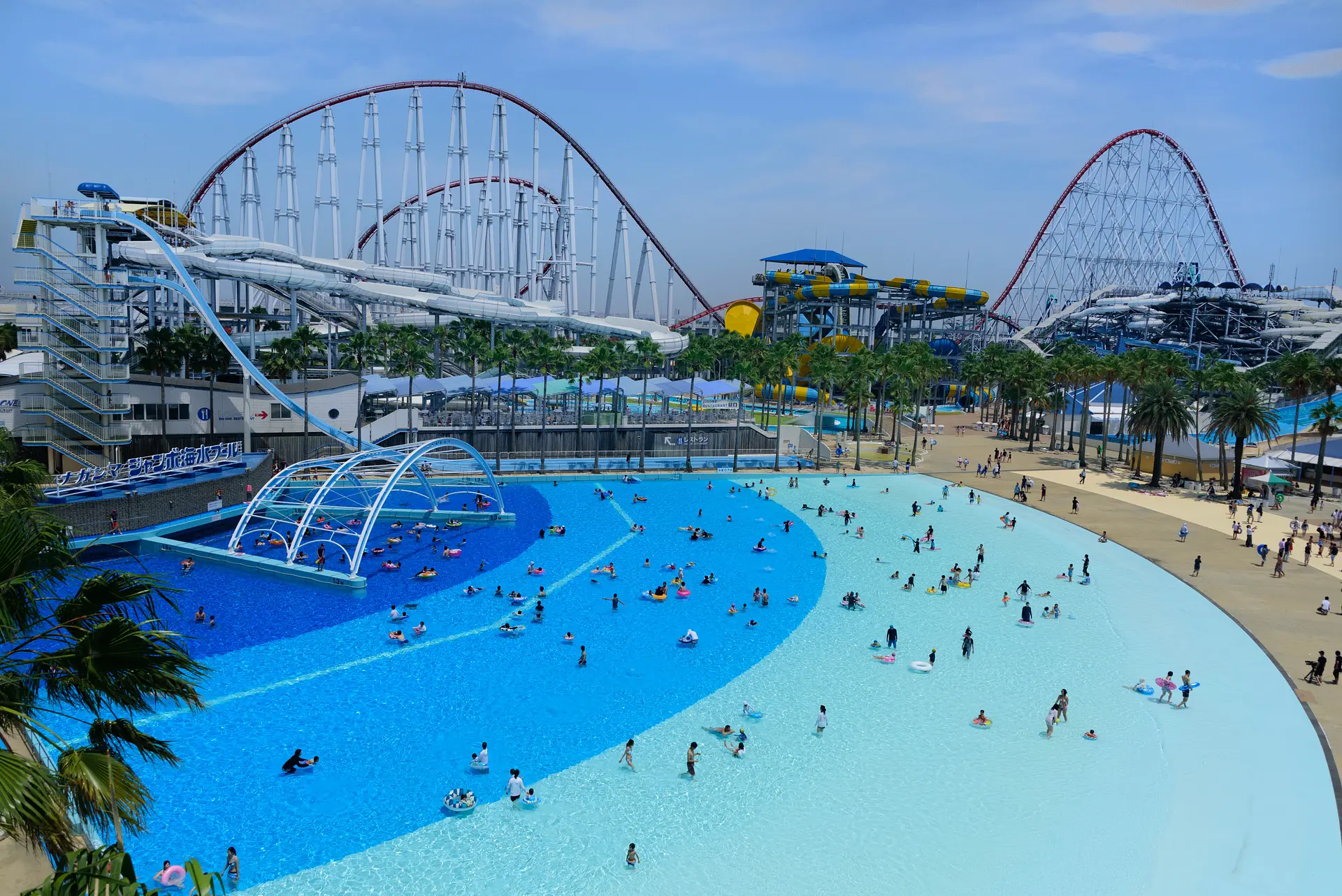 世界最大級の「ナガシマジャンボ海水プール」に2016年、新アトラクション「ジャパーーーン」が登場!約75,000㎡の広大なスケールのプールにさらに魅力的な施設ができました。