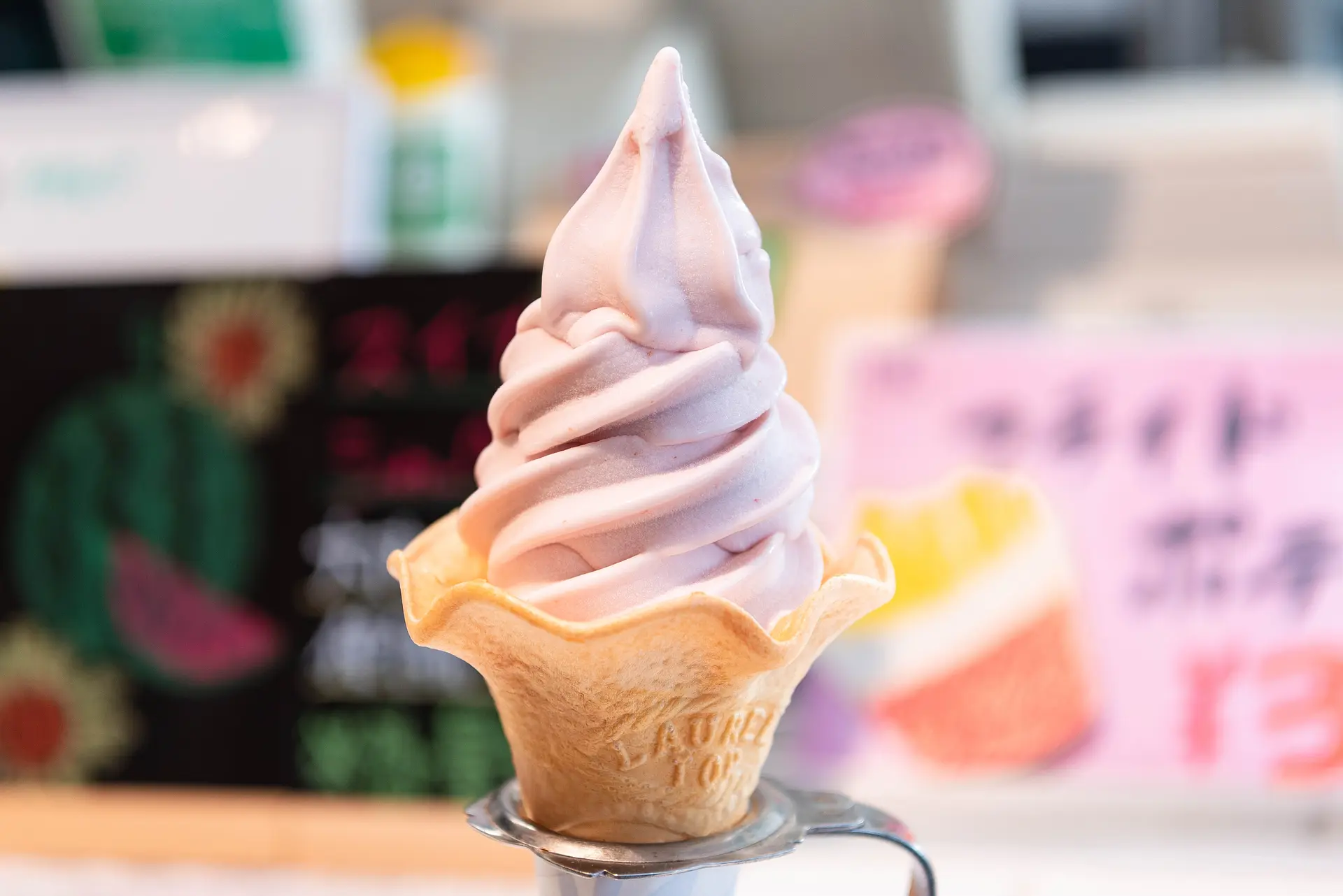 地元特産のいちご「レッドパール」を使った「レッドパールソフトクリーム(400 円)」で、火照った体をクールダウン。