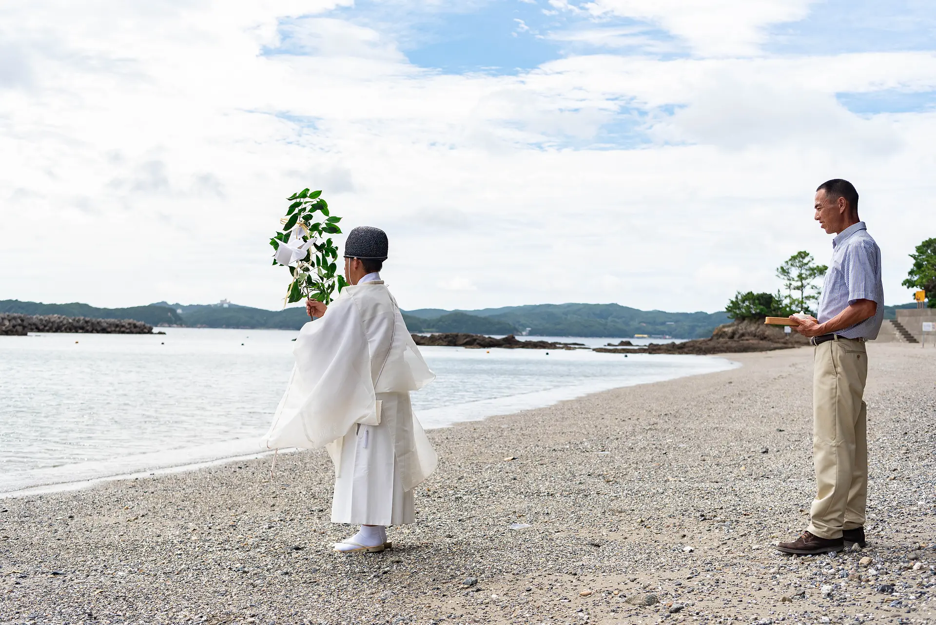 海開きとなる 7 月 15 日には関係者を集め、安全祈願祭が粛々と実施されました。