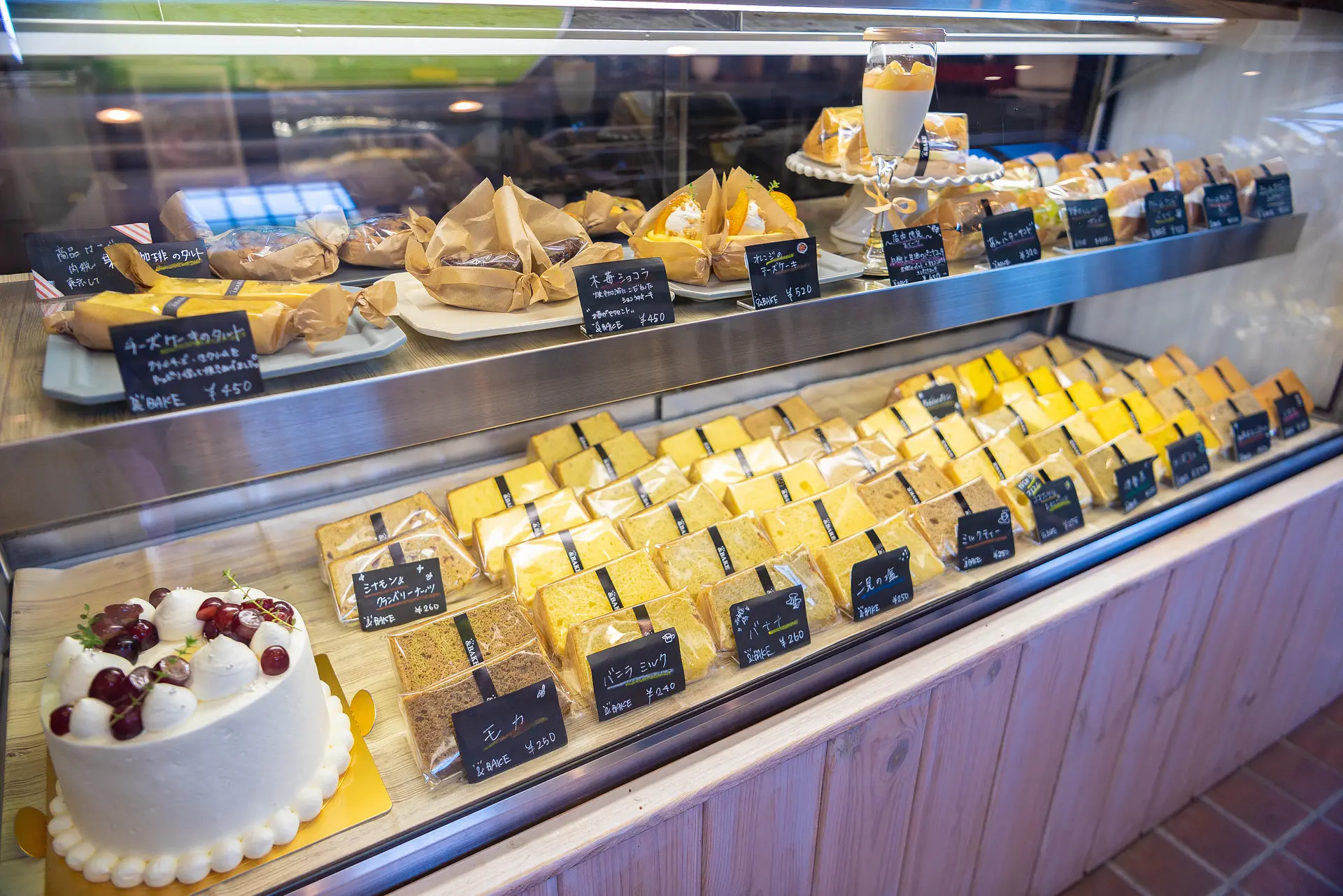 シフォンケーキは 10 種類以上あり、テイクアウトもできるので、お土産にぴったりですよ。