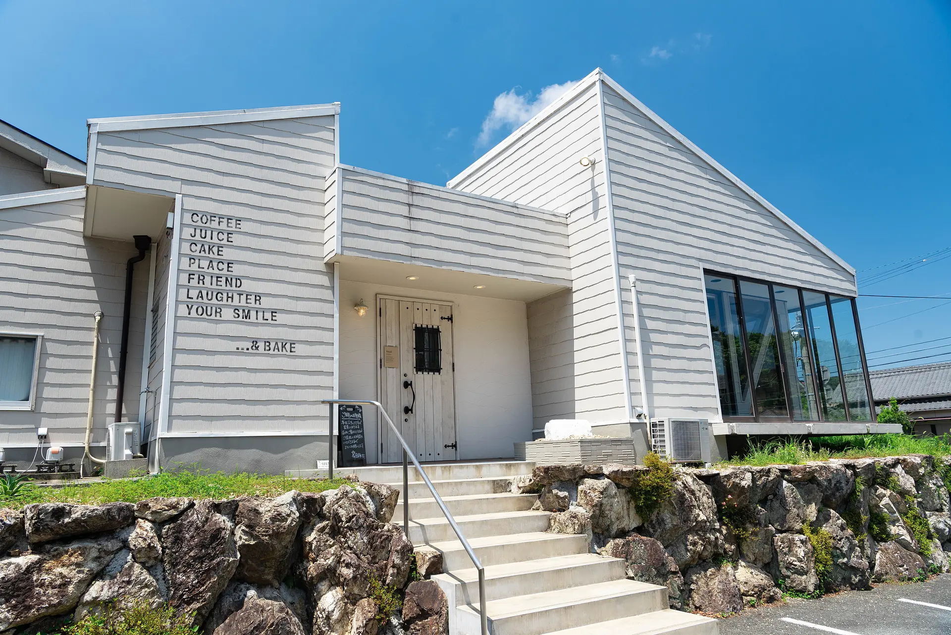 安楽島海水浴場から車で 3~4 分の場所にある「&BAKE(アンドベイク)」は、手づくりのふわふわシフォンケーキと、見た目も美しい凝ったパフェが人気のカフェです。