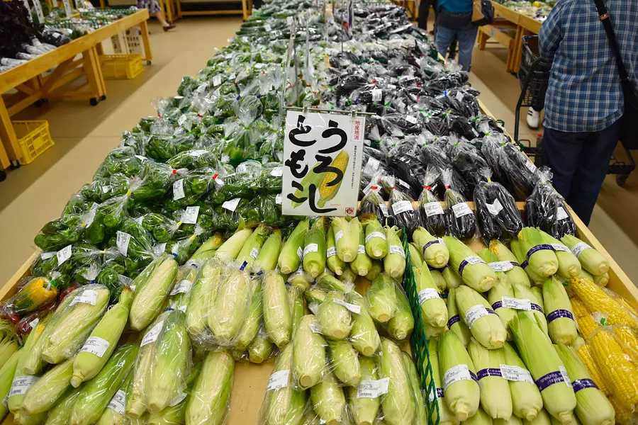とうもろこし、ピーマン、なすと旬の野菜が豊富に並びます。ちなみに並んでいる商品は、少し時間が経つとすぐに売れていっていました。
