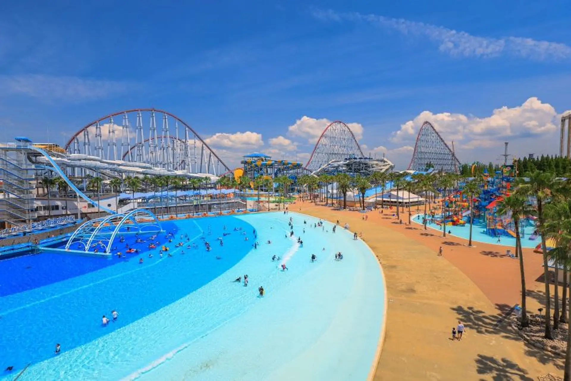 ナガシマスパーランド内にある「ジャンボ海水プール」は、世界最大級の75,000㎡の敷地に大人から子供まで楽しめるスライダーやプールがいっぱい!