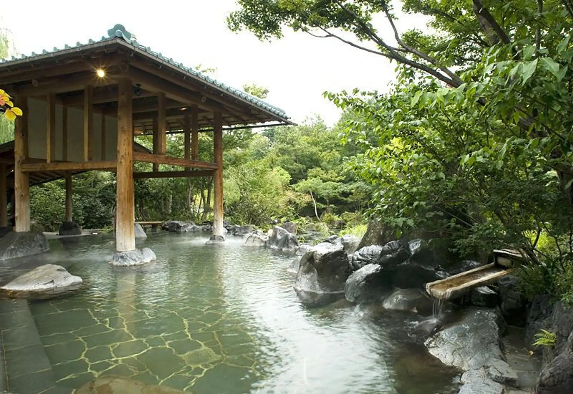 日帰り大自然露天風呂「湯あみの島」は、大自然の情景を模倣した露天風呂が魅力。