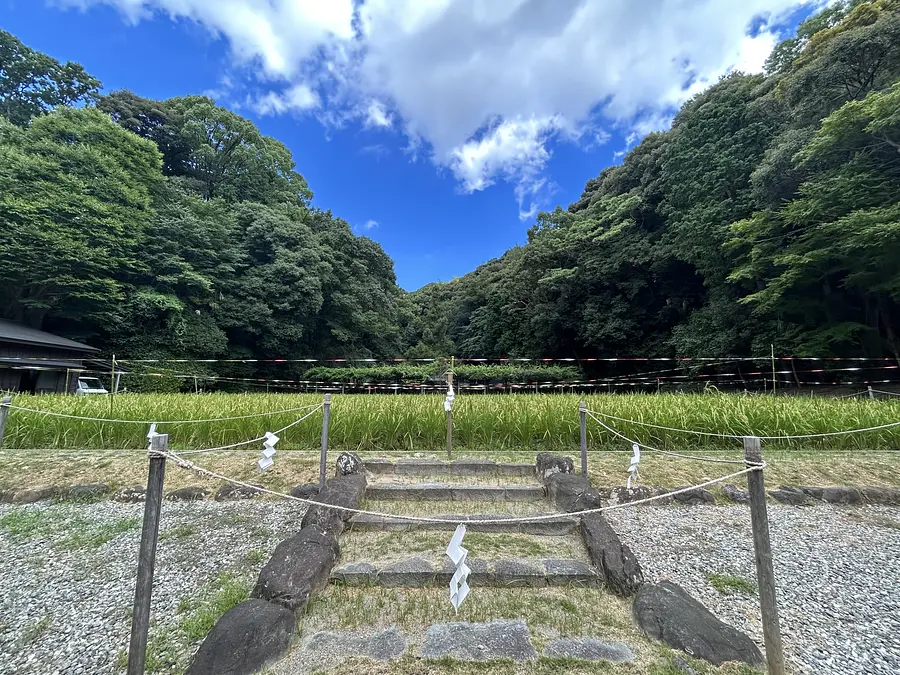 猿田彦神社の本殿の後ろには、稲が実る御神田があります。