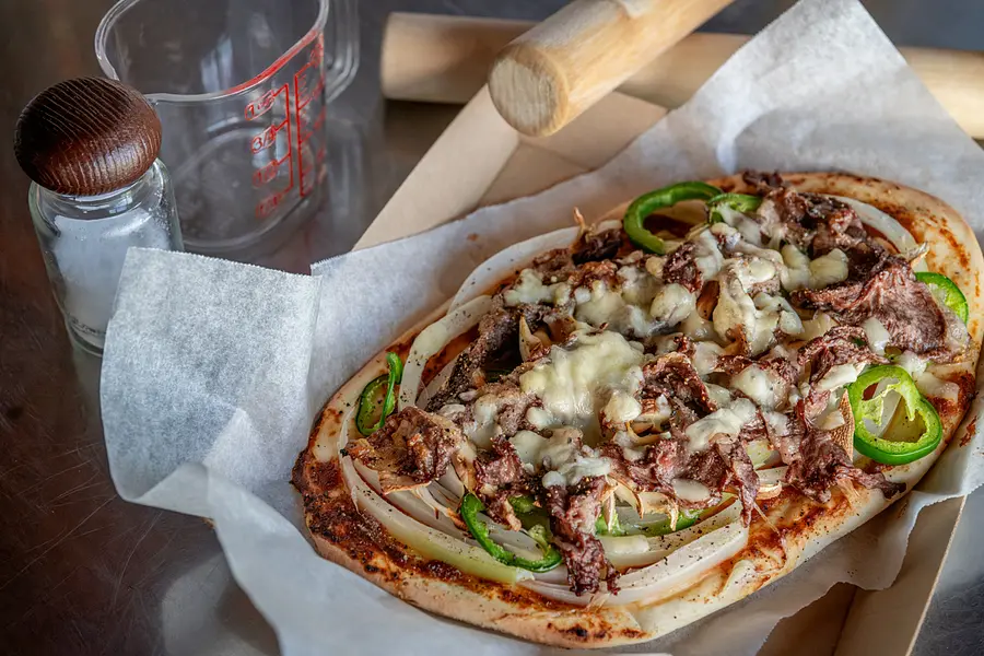 野菜を乗せたら、松阪牛をどーんと豪快にトッピング!なんとも贅沢なピザですね。