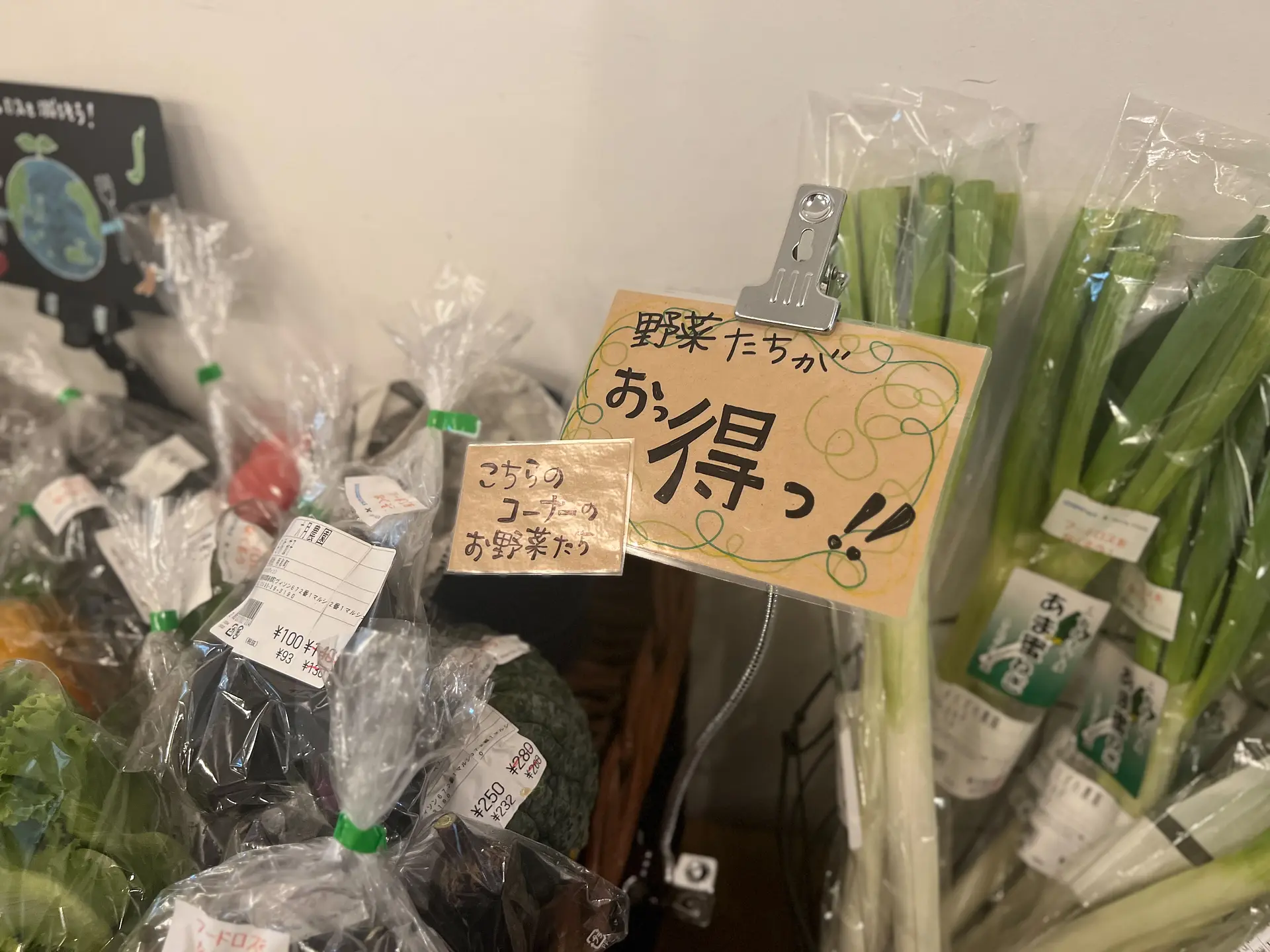 SDGsの一環で「フードロスをなくそう!」コーナーも設置されています。まだまだ美味しく食べられるお野菜や果物がお値打ちな価格になっています。食べてみたいと思っていたお野菜や高級な果物など、普段買う機会がなかったお野菜・果物がお手頃に買うことができますので、こちらも要チェックです!