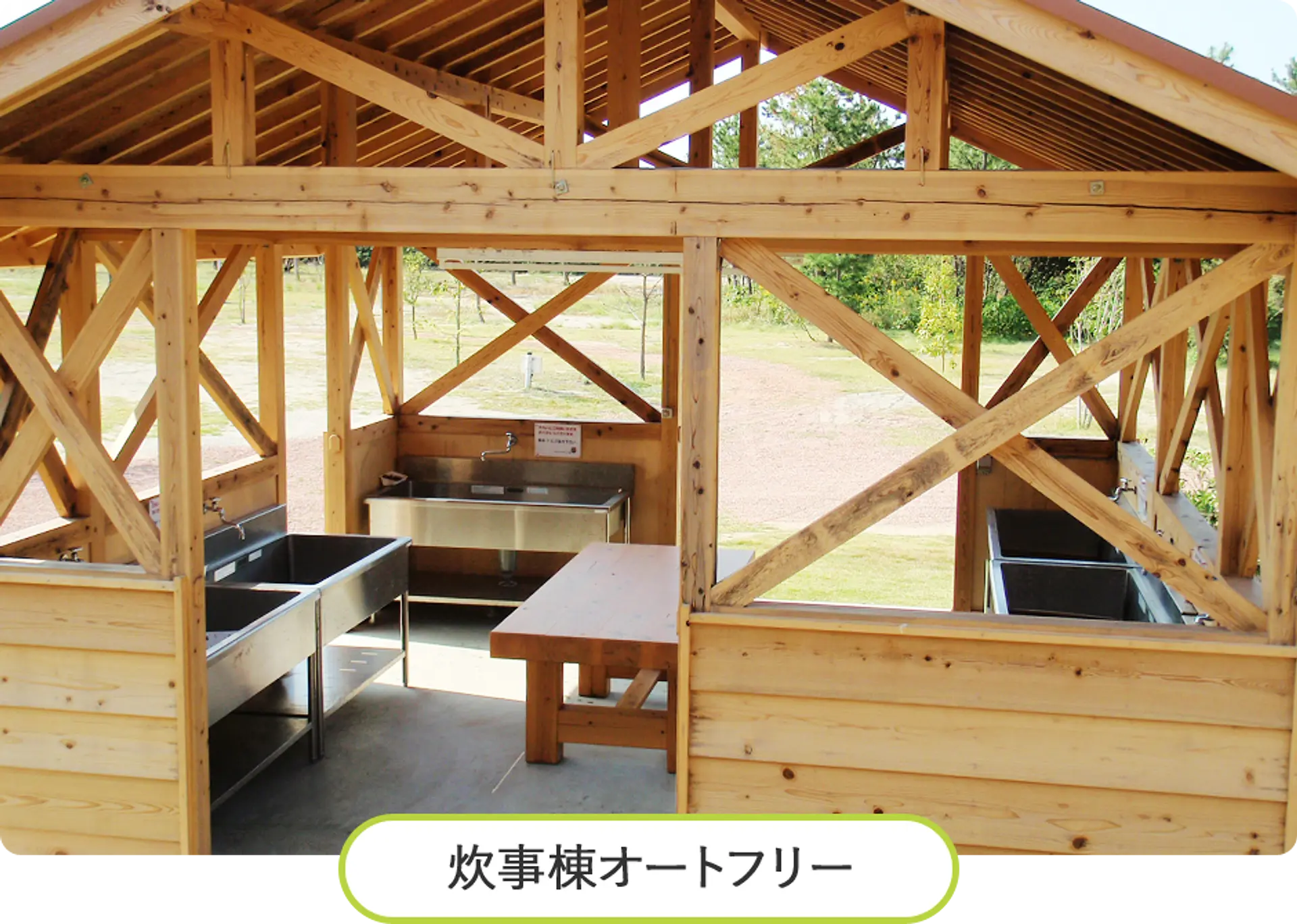 区画オートキャンプサイトとサン大淀サイトには温水が出る設備も完備しているため、油汚れや冬でも安心して洗い物ができます。(食器用洗剤などは持参が必要)